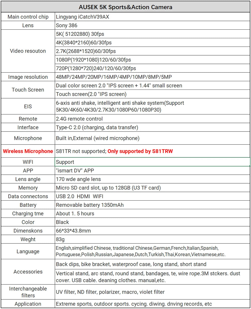 Main Processor ( Maximum HD Support): Icatch V39 (4K/30fps)