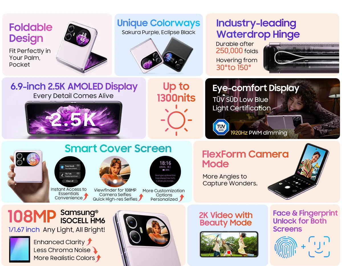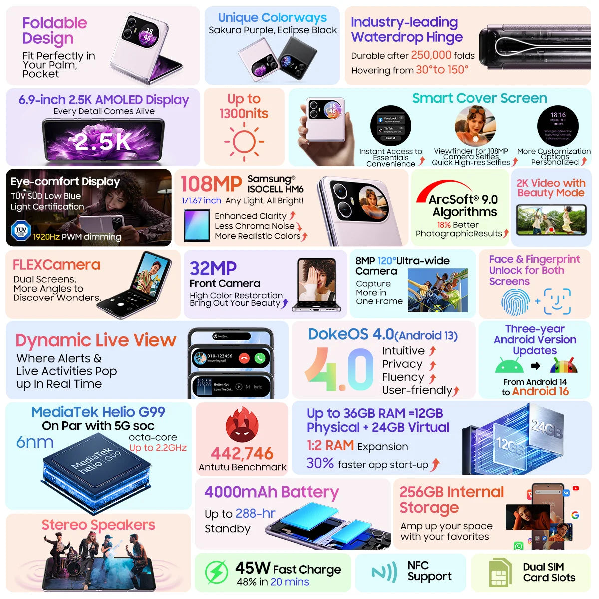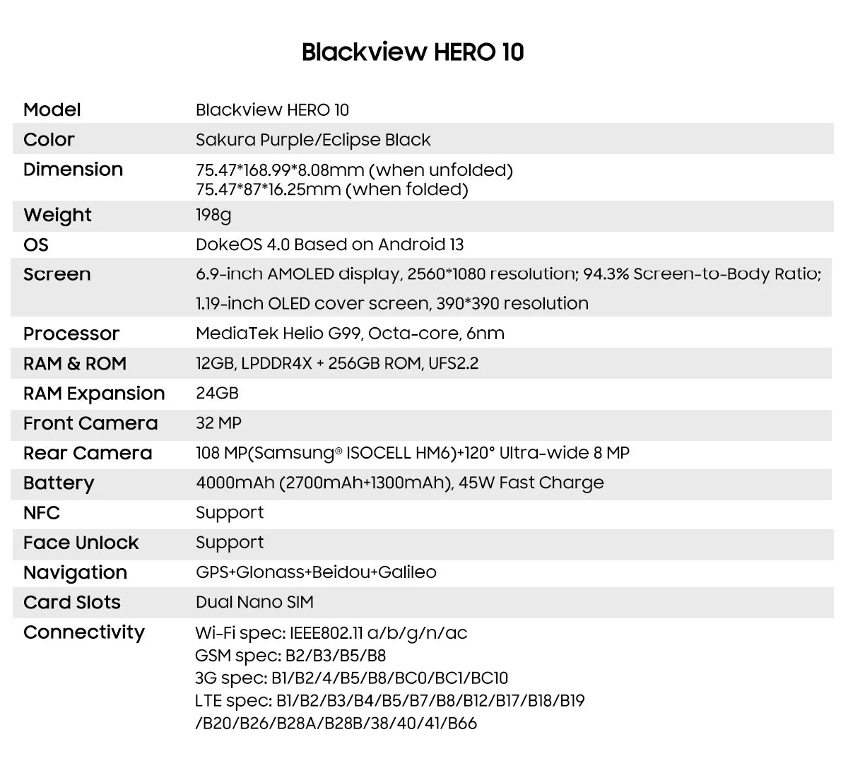 2024 Blackview HERO 10 Smartphone 6.9 inch AMOLED Folding Display MTK Helio G99 12GB 256GB 108MP Camera 4000mAh 45W Charging NFC