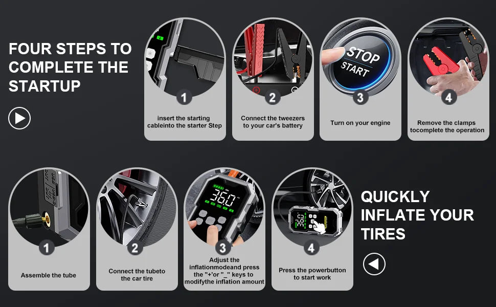 Feature: LED Light, Spark Proof, Digital Screen, Start Car, A grade Batteries