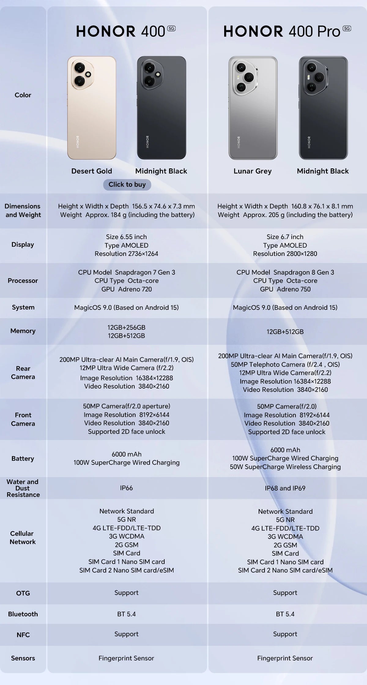 2025 New HONOR 400 Pro 5G Global Version Smartphone 200MP AI Main Camera 6.7'' AMOLED Screen 6000 mAh 100W Wired 50W Wireless