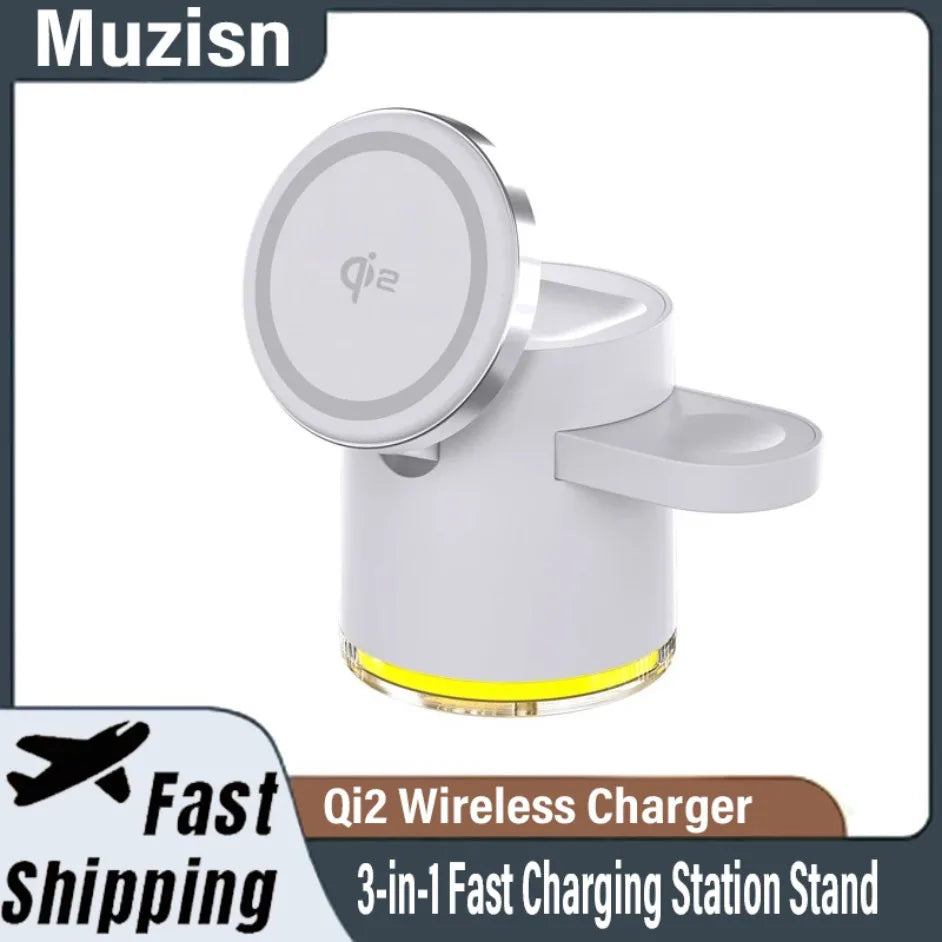 2025 New Qi2 Wireless Charger 3-in-1 Fast Charging Station Stand Folding Holder for iPhone 16 15 14 Pro Max Airpods Apple Watch