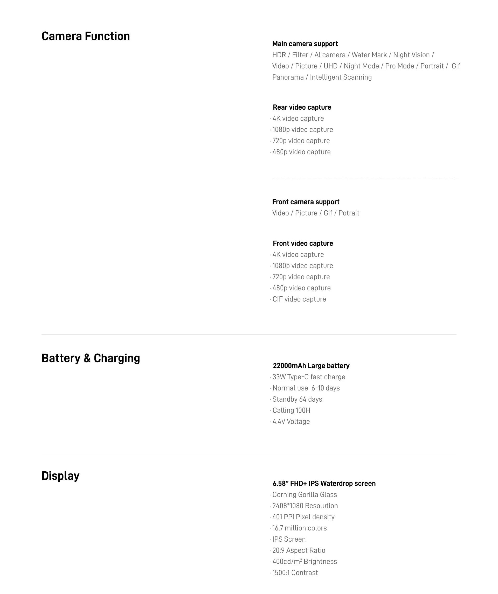 22000mAh Battery: Support 33W fast charging