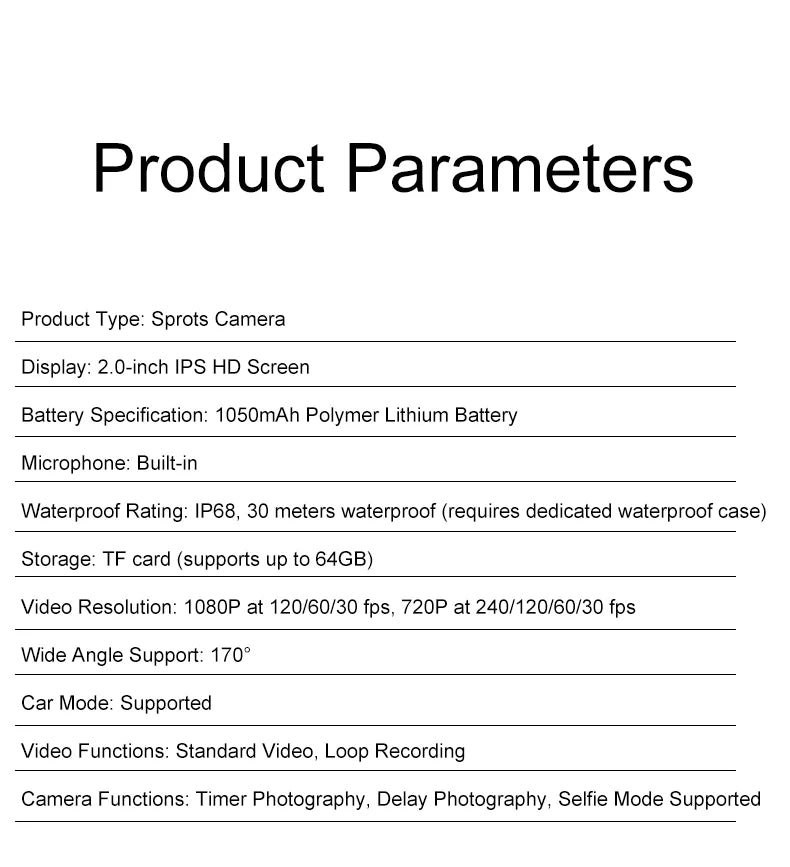 Action Camera 1080P/30FPS 2.0 In IPS Screen 170° Underwater Waterproof Helmet Video Recording Sports Cameras Outdoor Digital Cam