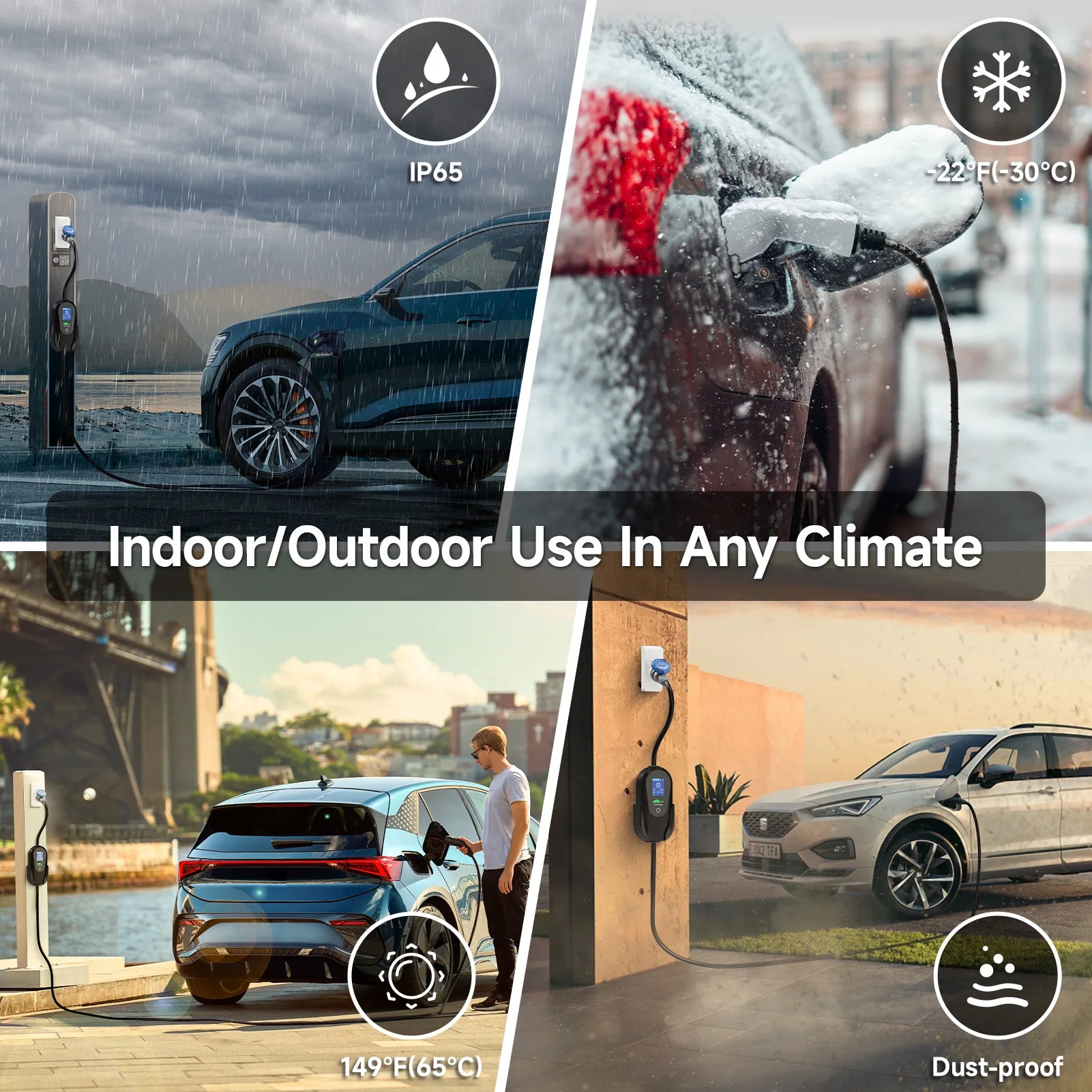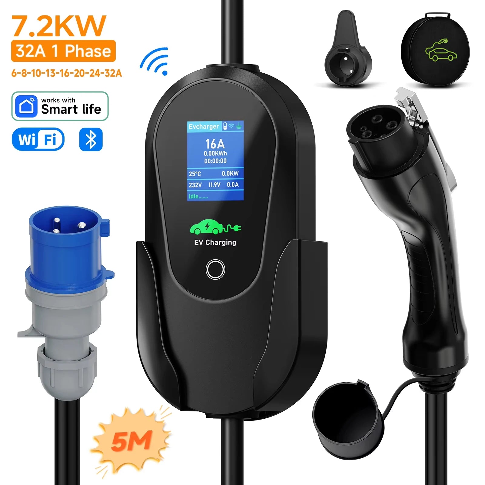 AFEEV Type2 IEC 62196-2 Portable EV Charger 7.2KW 32A Type1 SAEJ1772 Wallbox EVSE Fast Charging Cable WiFi APP Bluetooth Control