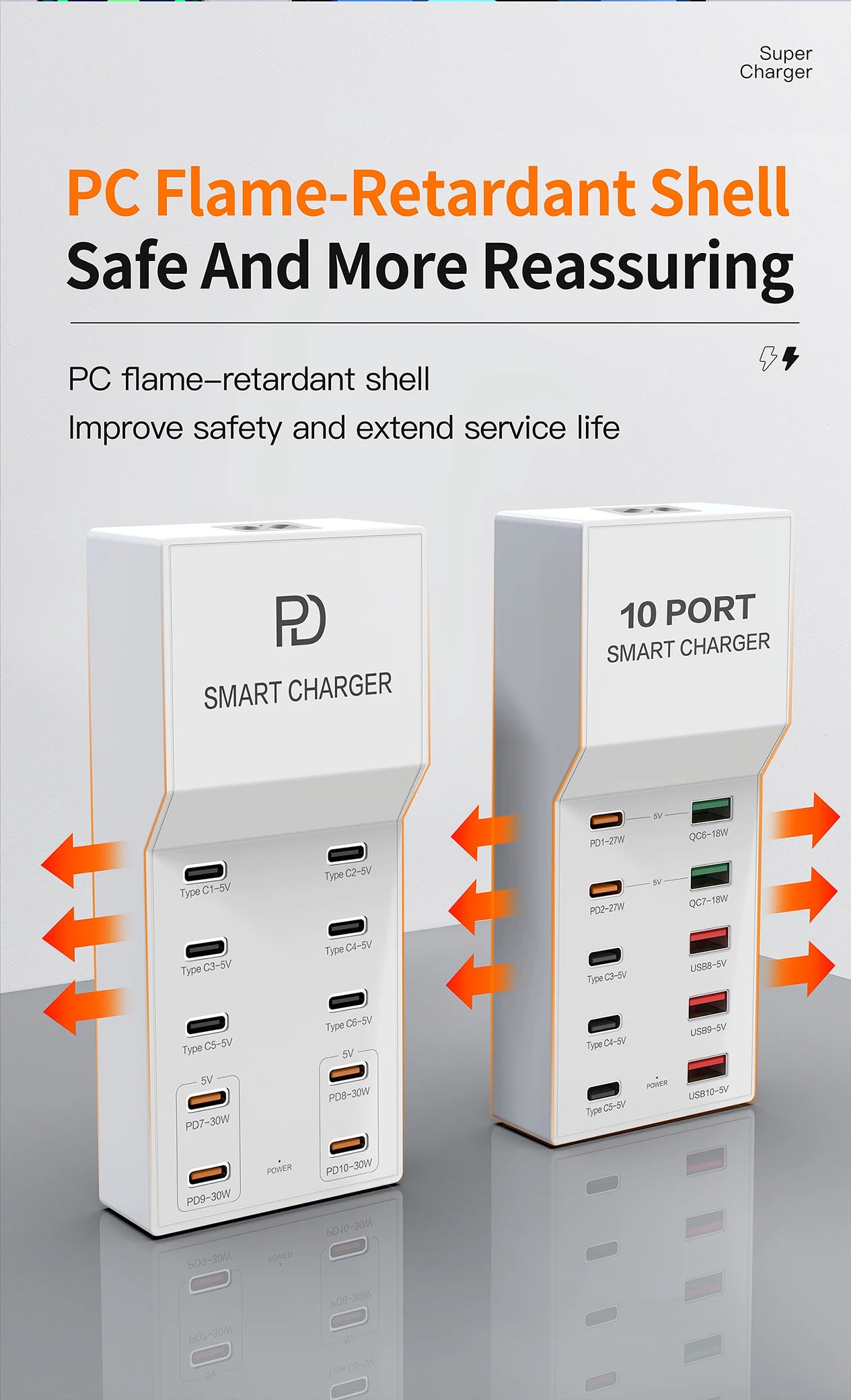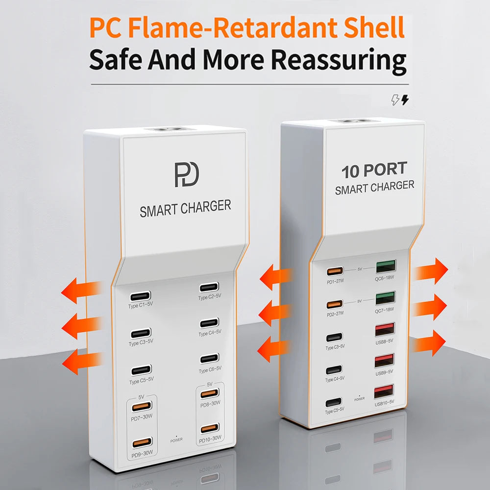 AIXXCO 72W 8 Ports PD QC3.0 USB C Fast Charger Type c Wall Adapter Super Fast Charging For Iphone Samsung Ipad Xiaomi