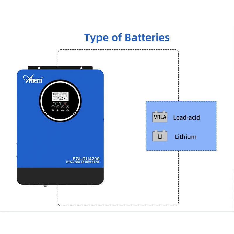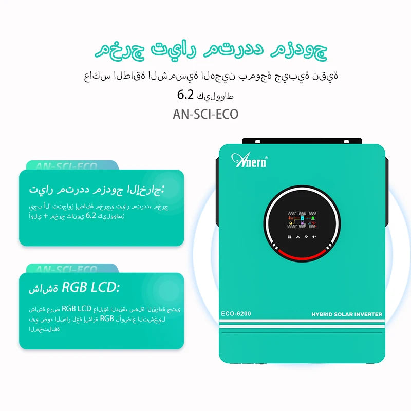 Anern 4200W 6200W Hybrid Inverter 24v Mppt on Grid Off Grid Inverter 48v 230V PV Input Max 500vdc MPPT 120A Charger
