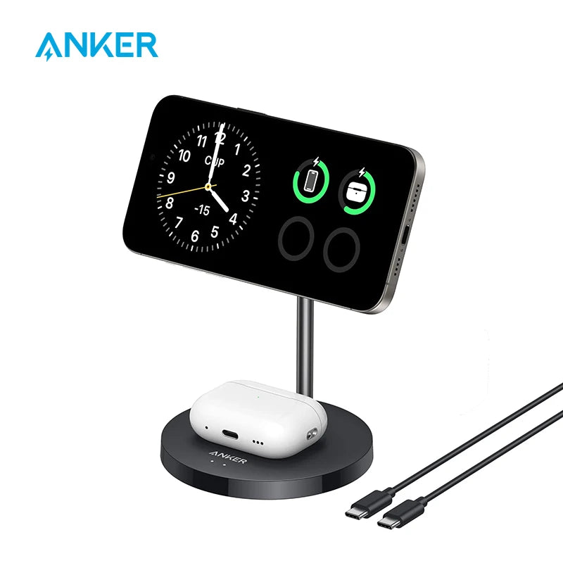 Anker MagSafe Charger Stand Compatible, MagGo 2-in-1 Charging Station, 【Upgraded】 Qi2 Certified 15W Wireless Charger Stand, for