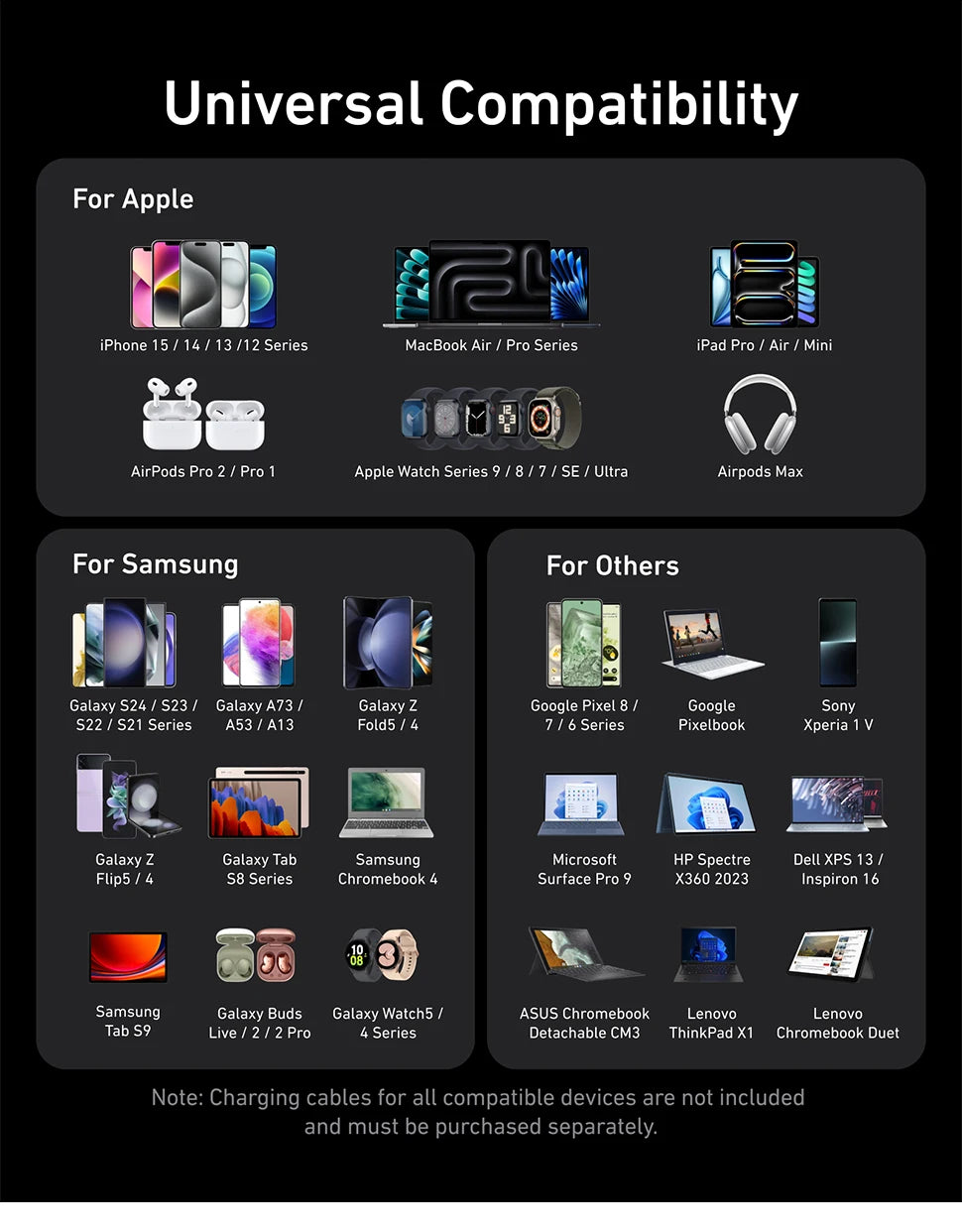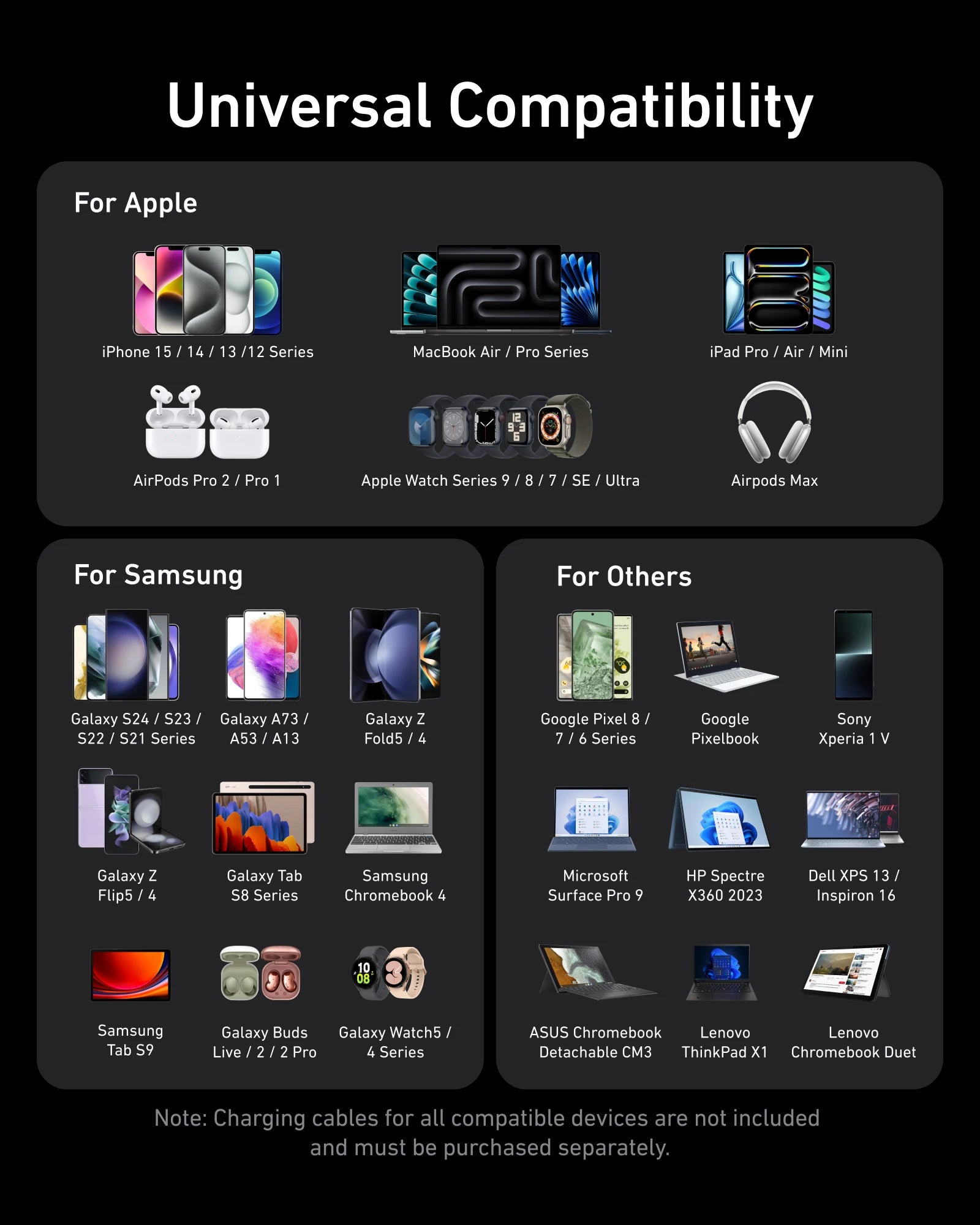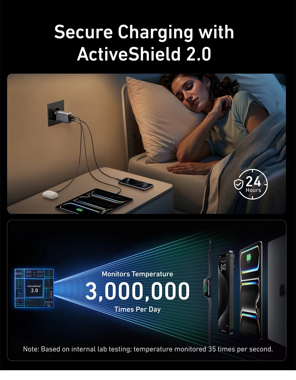 Output2: Two Ports in Use: 100W Max (USB-C1 + USB-C2 Output: 65W + 35W (100W Max) ;USB-C1 + USB-A Output: 65W + 22.5W (87.5W Max) ;USB-C2 + USB-A Output: 12.0W + 12.0W (24.0W Max))