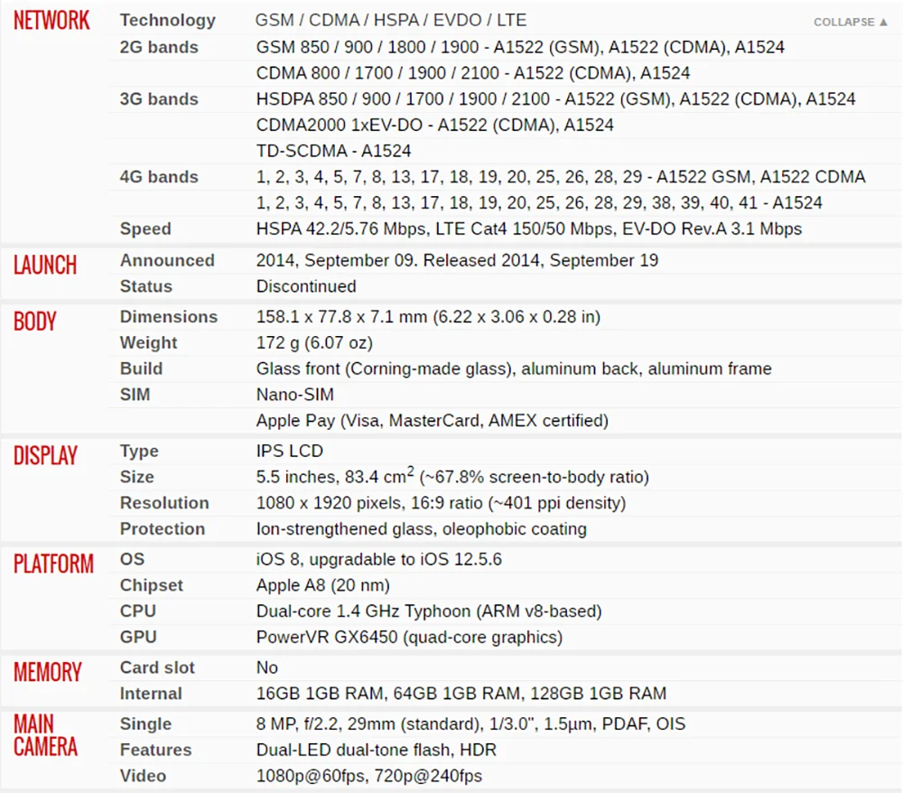 Apple iPhone 6 Plus Fingerprint Mobile Phone Original Used Unlocked 5.5" 16/64/128GB ROM Dual-core IOS 8MP Camera