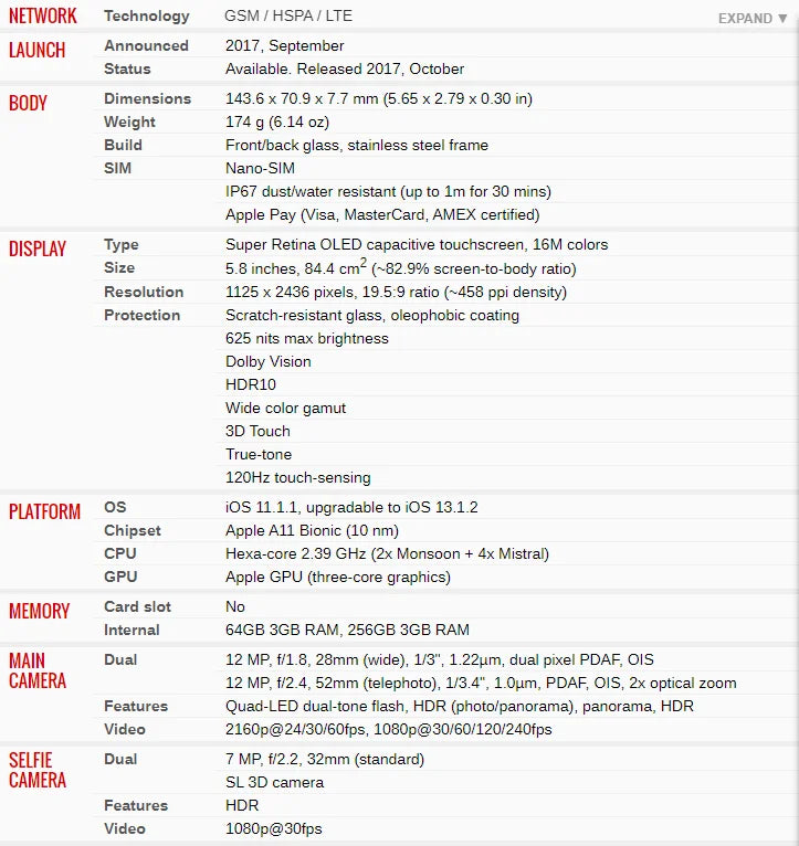 Apple Model: iPhone X,Apple A11 Bionic