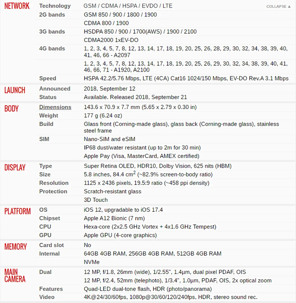 Apple Model: iPhone XS