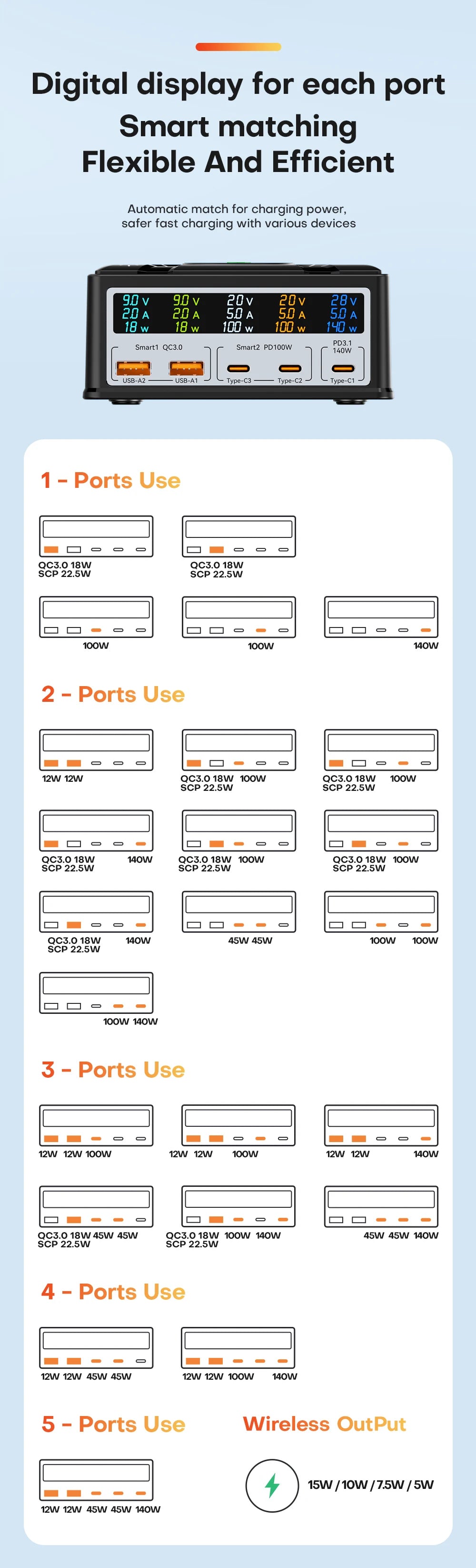 Output Interface: USB,Type C,2 A Ports,3 C Ports