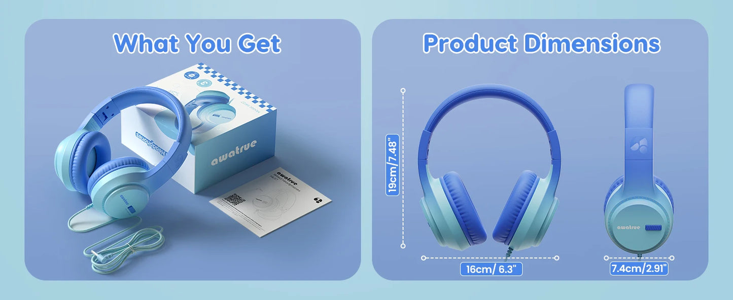 AWATRUE HK07 Kids Wired Headphones Stereo Sound Earphone with Mic Music Study Headset Limited Volume 74dB/85dB for Children