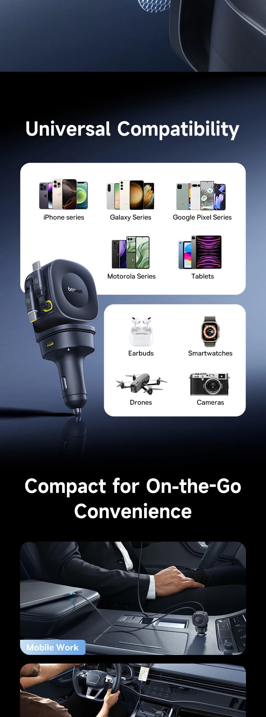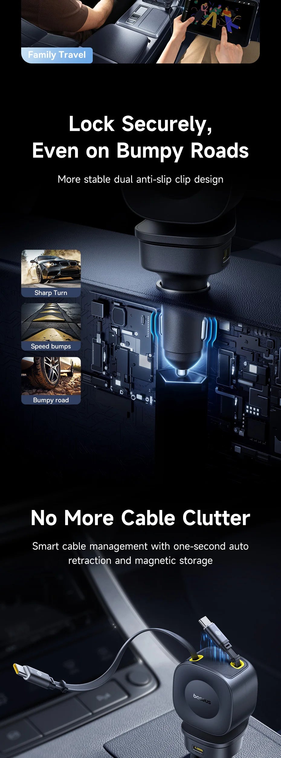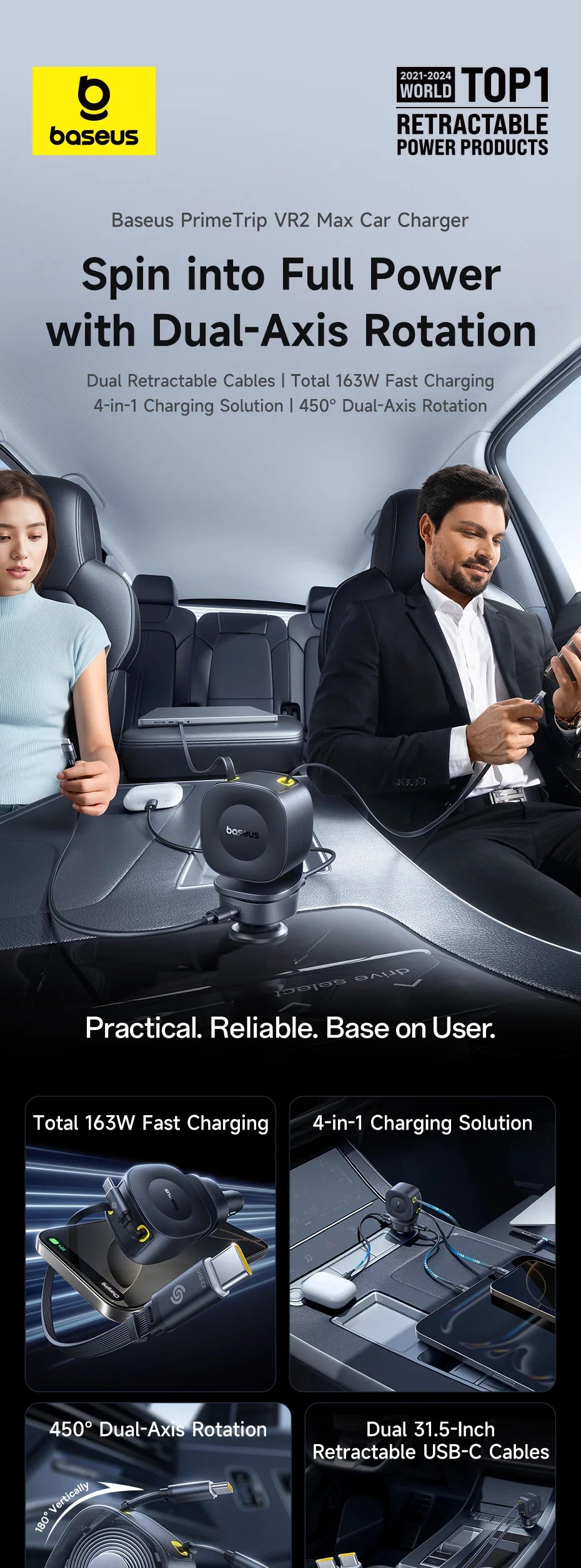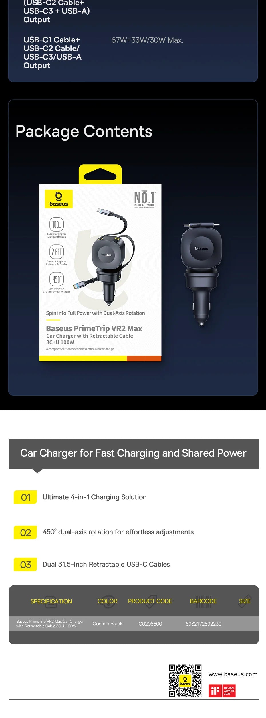Product: Baseus 100W PrimeTrip VR2 Max Car Charger with Retractable Cable