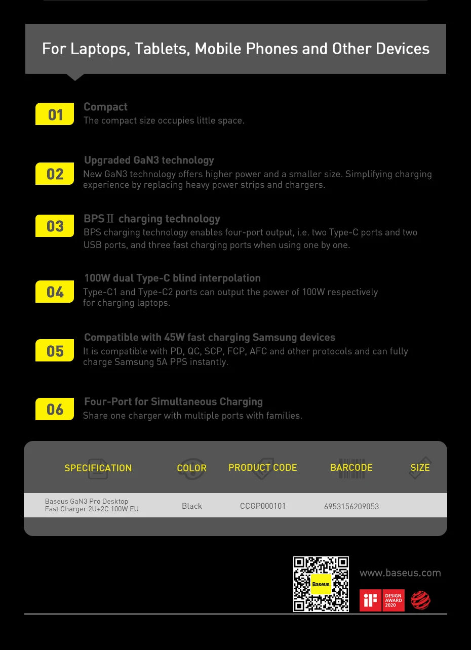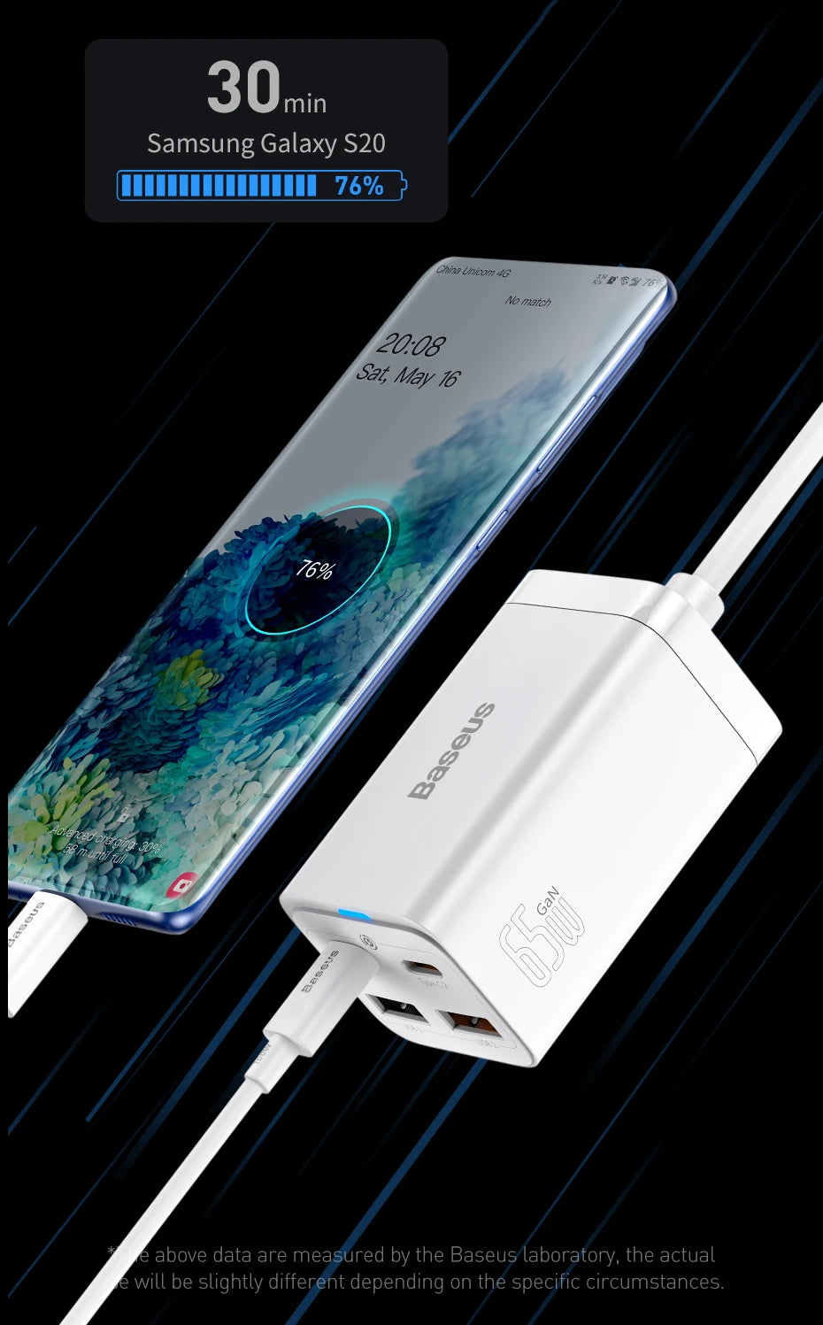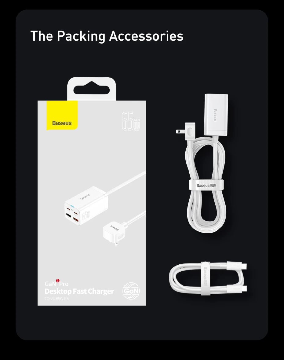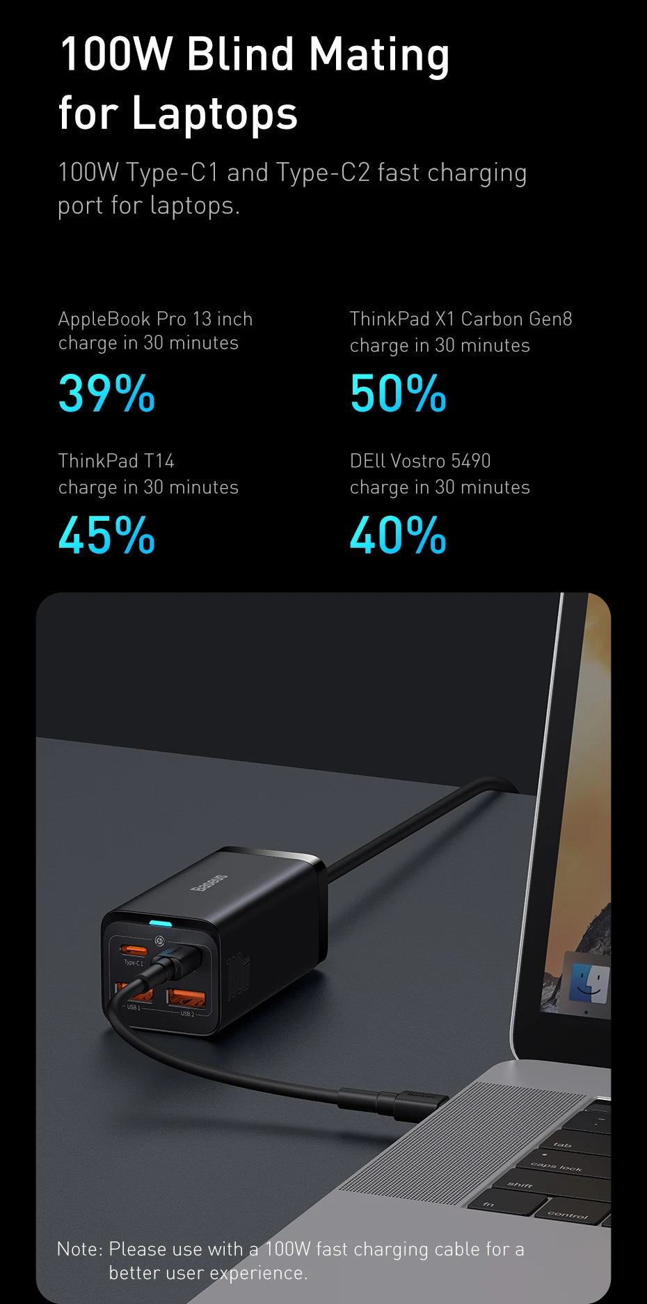 Baseus 65W/100W GaN Charger Desktop Laptop Fast Charger 4 in 1 Adapter For iPhone 15 14 13 Pro Max Phone Charger Xiaomi Samsung