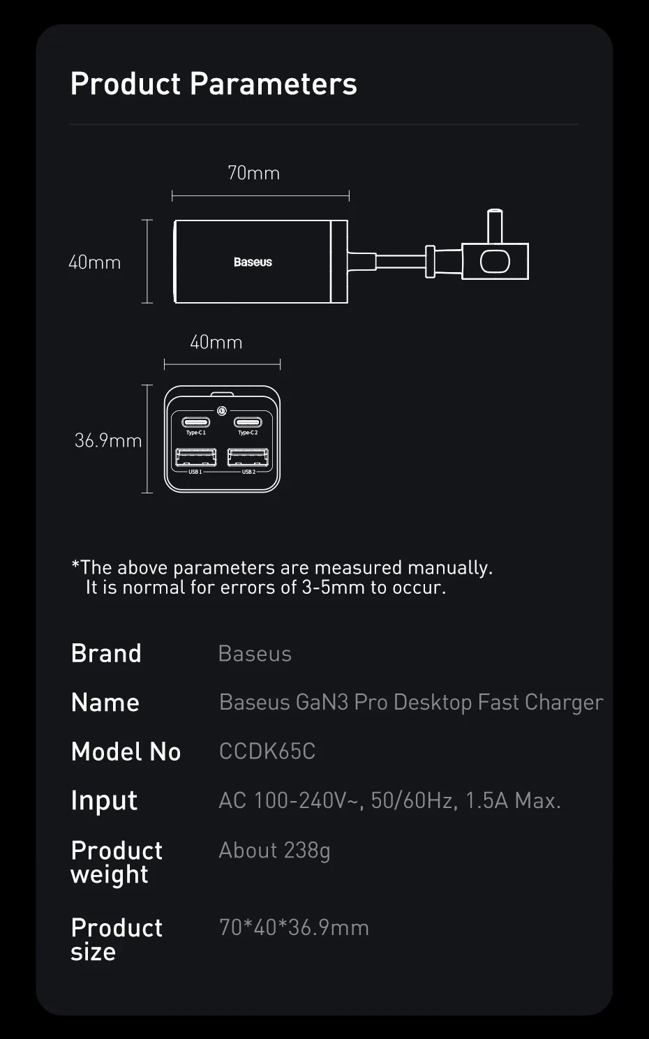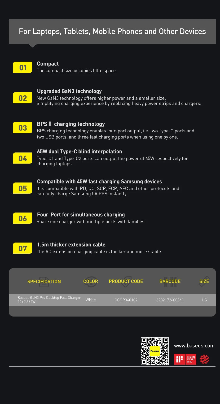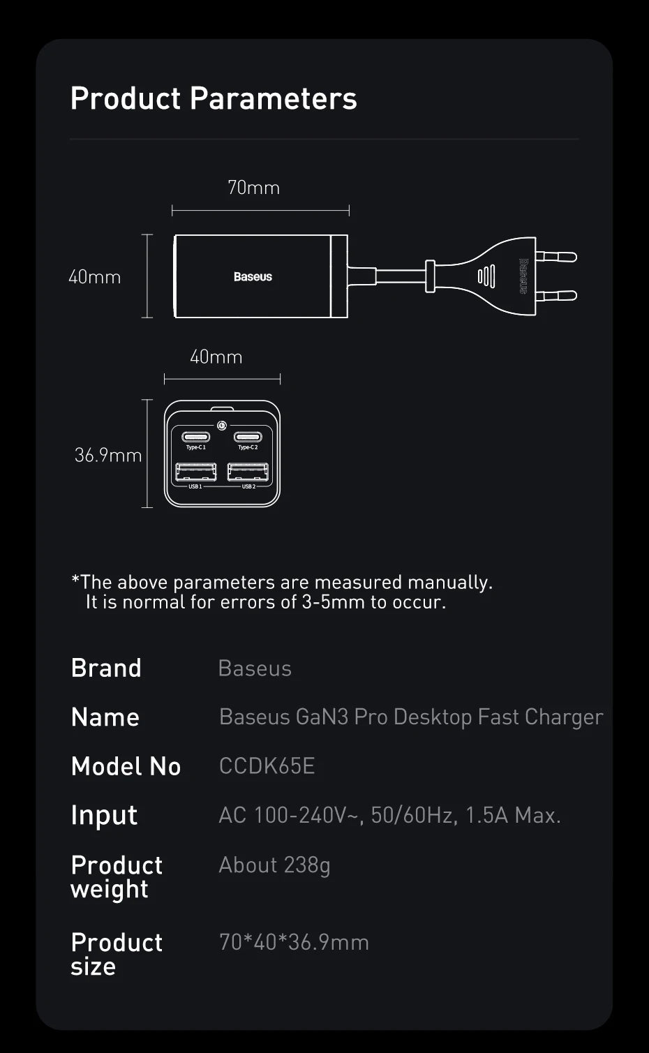 Baseus 65W/100W GaN Charger Desktop Laptop Fast Charger 4 in 1 Adapter For iPhone 15 14 13 Pro Max Phone Charger Xiaomi Samsung