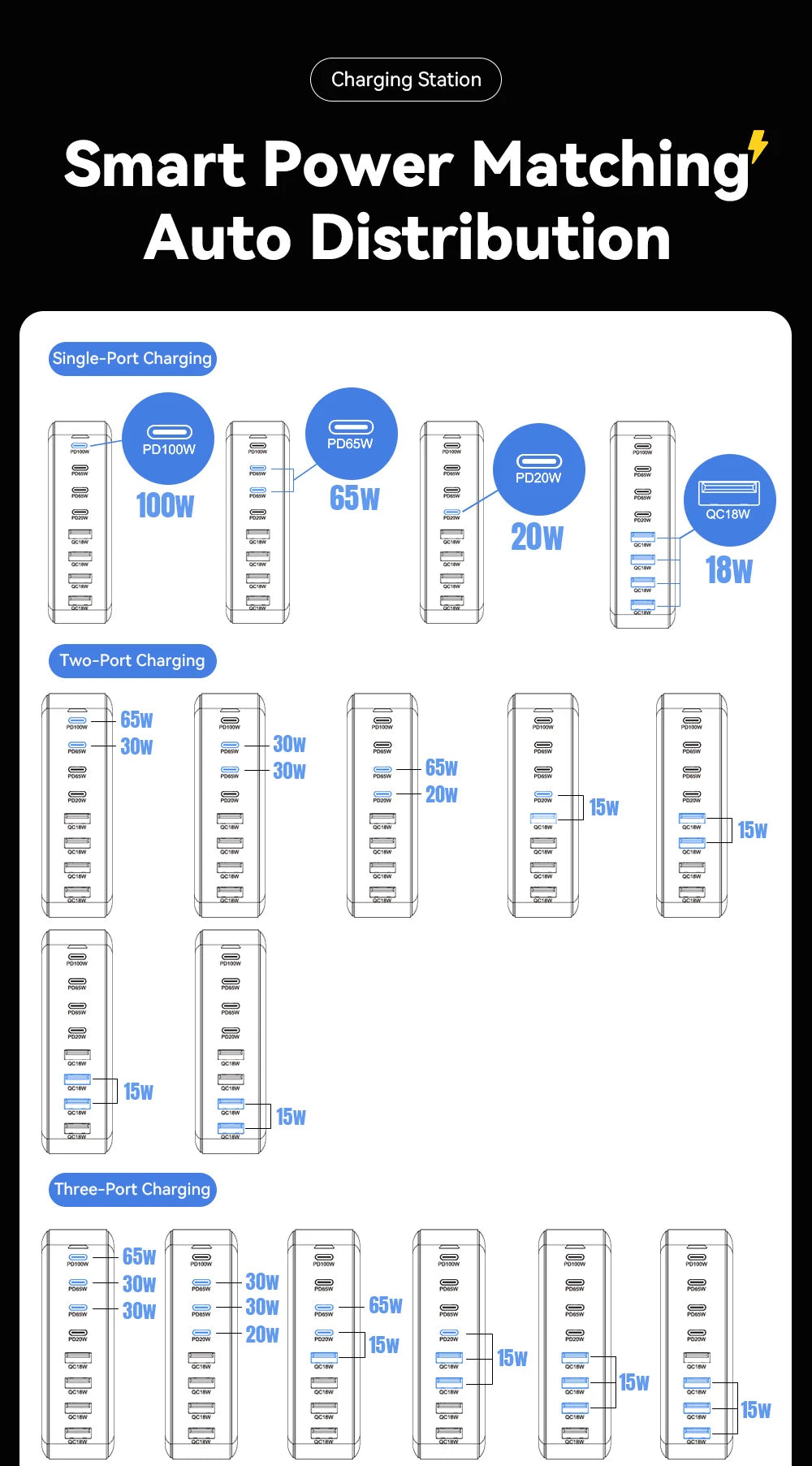 USB-C1 Output: 5V-3A;9V-3A;12V-3A;15V-3A;20V-5A 100W Max