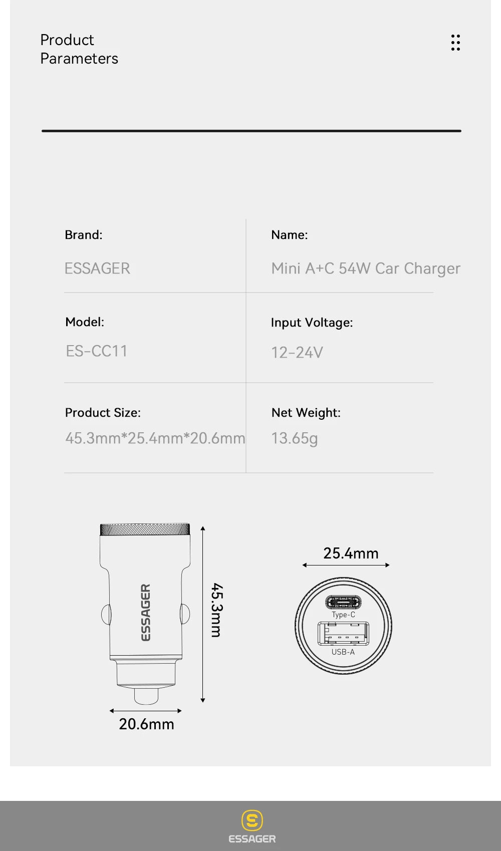 Model Number: Essager Mini 54W USB Car Charger