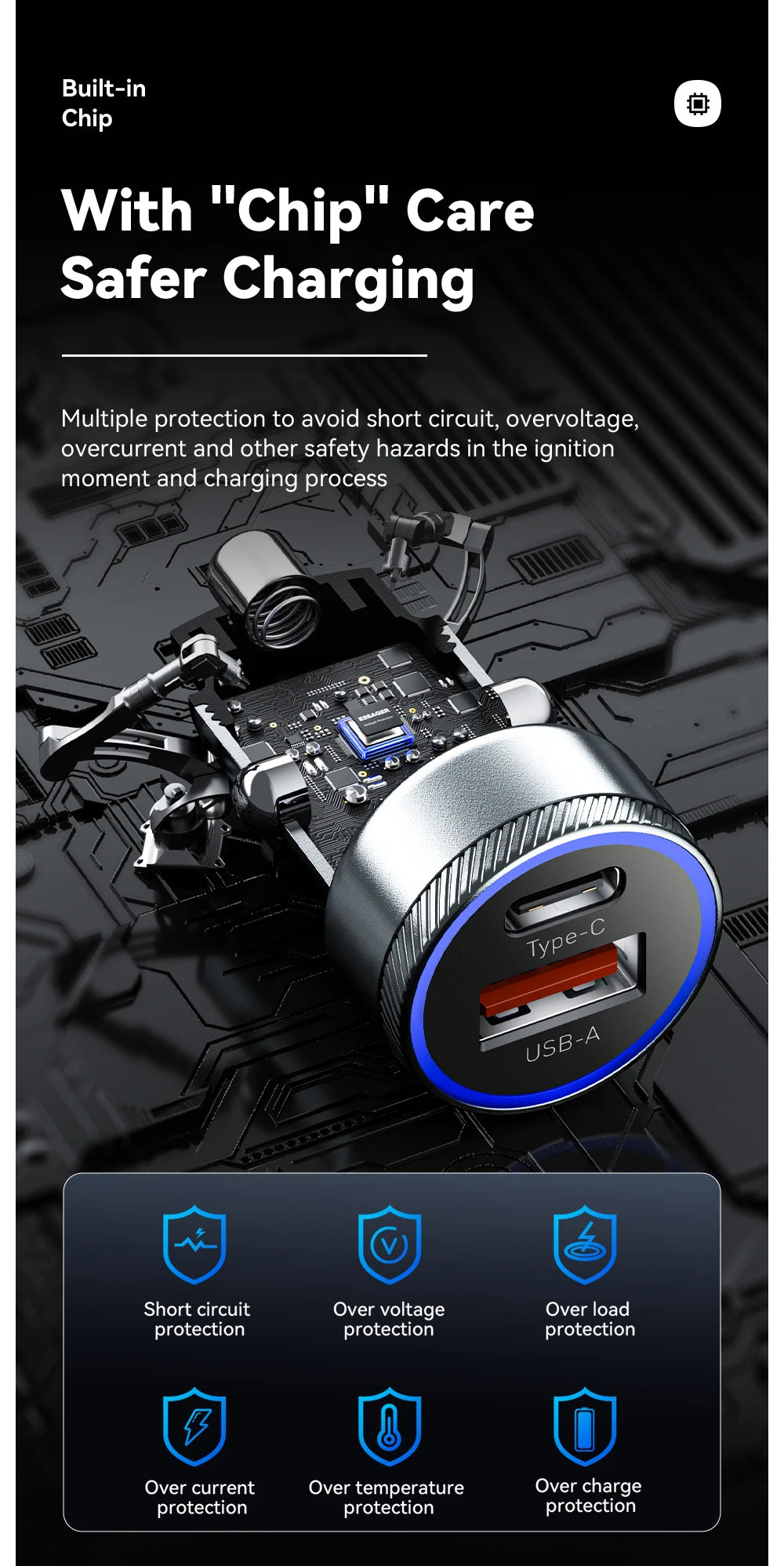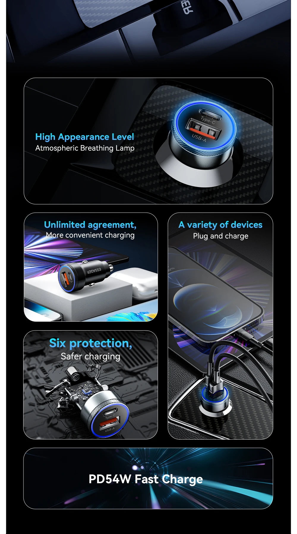 Feature 7: usb c charger / Charger type c / Cigarette lighter / Charger in Car