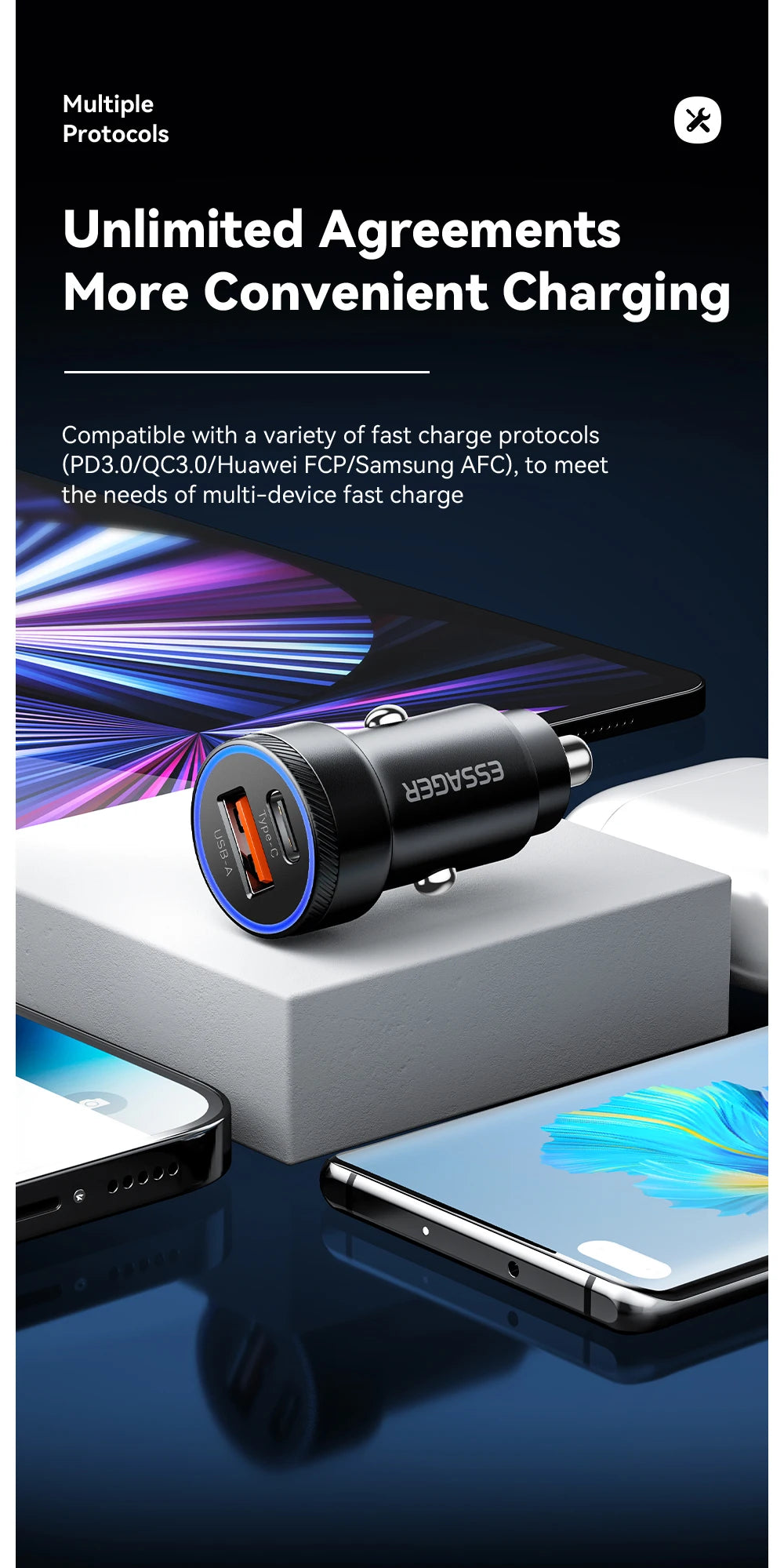 Supported Protocol: PD3.0/QC3.0/Huawei FCP/Samsung AFC