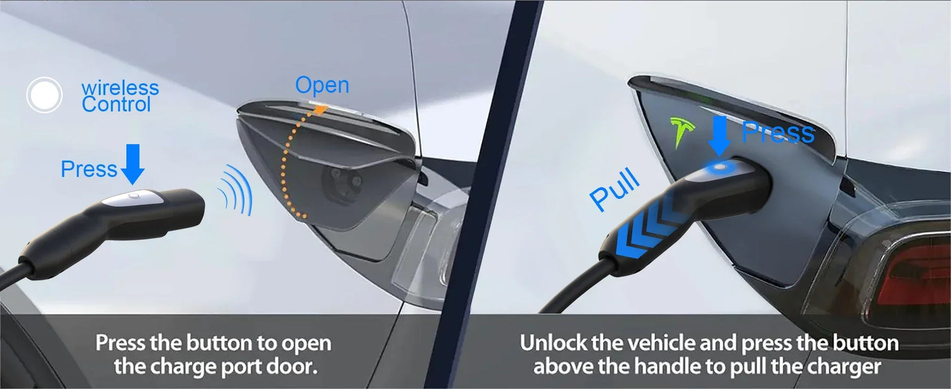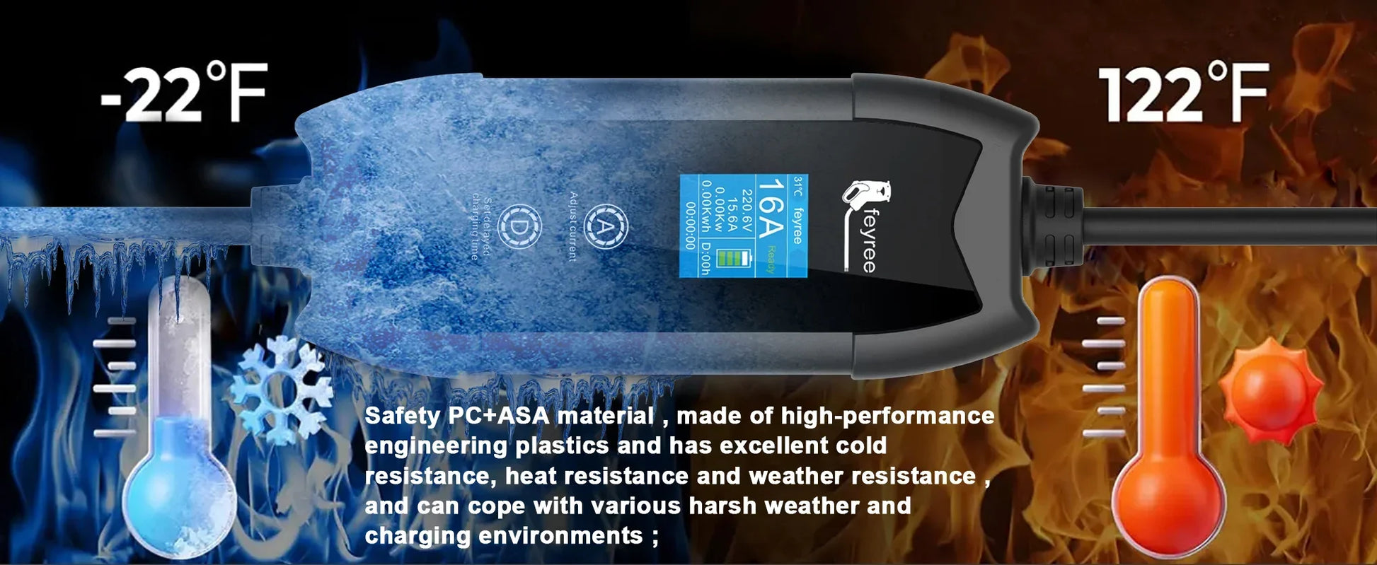 feyree EV Charger Portable 3.5kW Tesla NACS Charger Plug 1.8" LCD Screen with Set Delay Schedule Charging Station for Tesla Cars