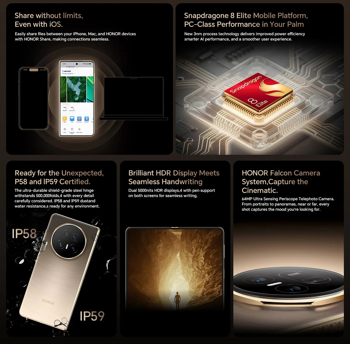 Global Version HONOR Magic V5 5G 16GB+512GB Foldable OLED Screen Snapdragon 8 Elite 5820 mAh Battery 50W Wireless SuperCharge