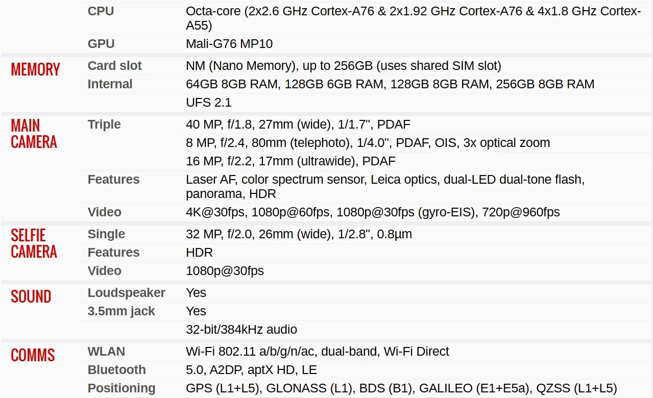 Rear Camera Pixel: ≈ 40 MP