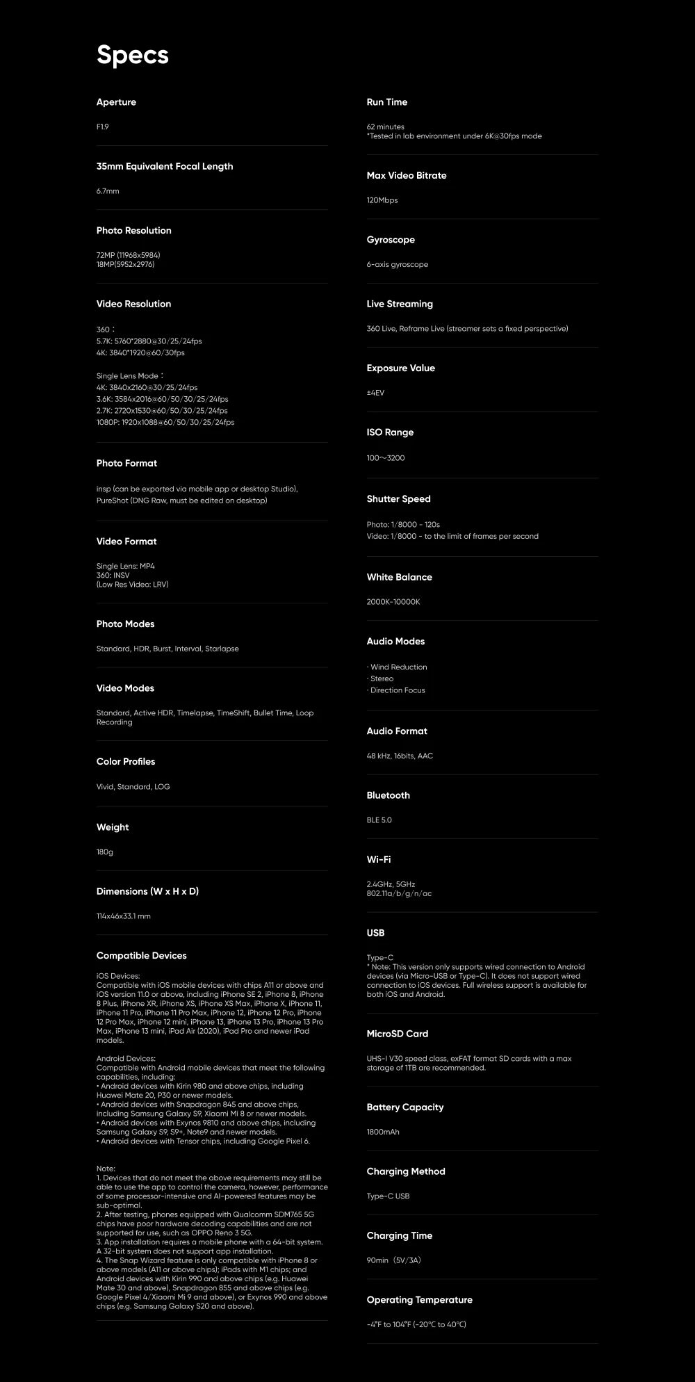 Main Processor ( Maximum HD Support): Ambarella H22 (4K/60FPS)