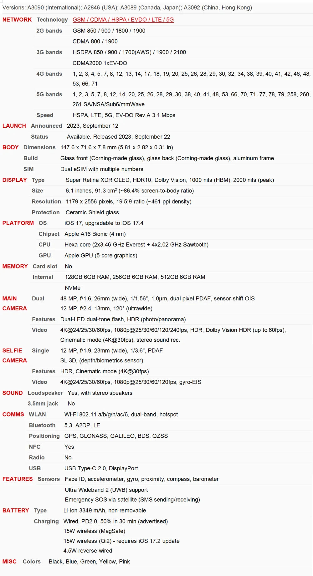 iPhone 15 Dual eSIM 6.1" Genuine Super Retina XDR OLED 128/256/512GB ROM 6GB RAM Face ID NFC A16 Original 98% New 5G Cell Phone