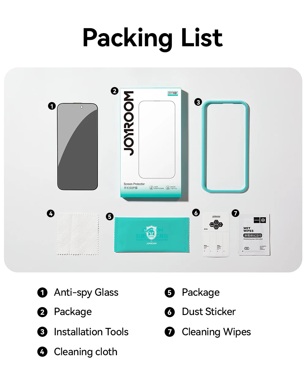 Joyroom 1/2Pcs Anti-spy Glass For iPhone 17 16 15 14 Pro Max Glass For iPhone 17 16 15 14 13 12 Pro Max Privacy Screen Protector