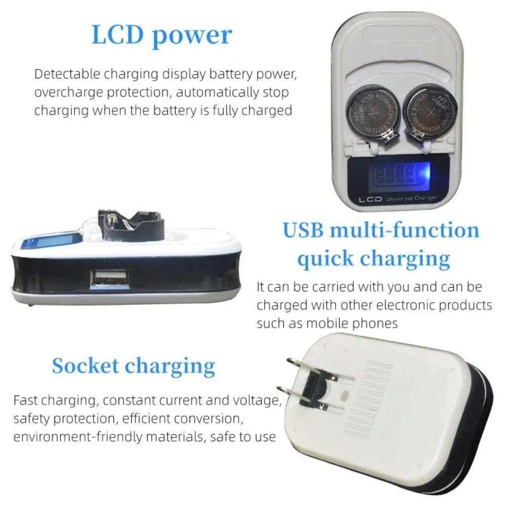 LCD Button Battery Charger for LIR2016 2025 2032 ML2016 2025 2032 Coin Cell Battery USB Multi-function Charging Supplies
