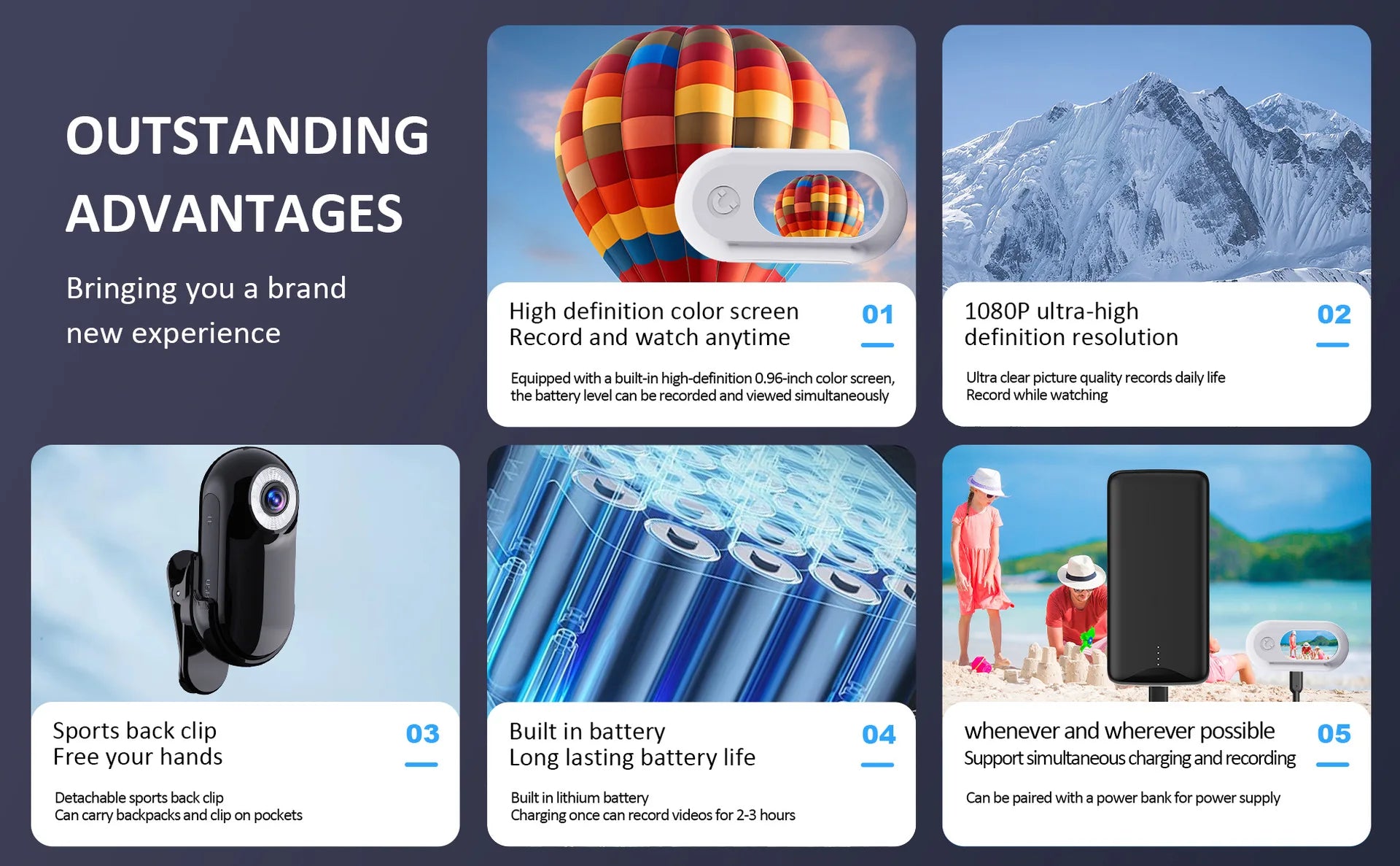 Mini 1080P Portable Camera Outdoor Sports Body Comcroder 0.96in Display Audio and Video Recorder Small DV Digital HD Monitor Cam