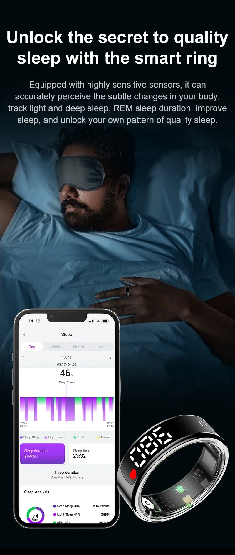 Metrics measured: Heart Rate Monitor,Blood Pressure Monitor,Sleep Monitor,Blood Oxygen Monitor,Body Temperature Monitor