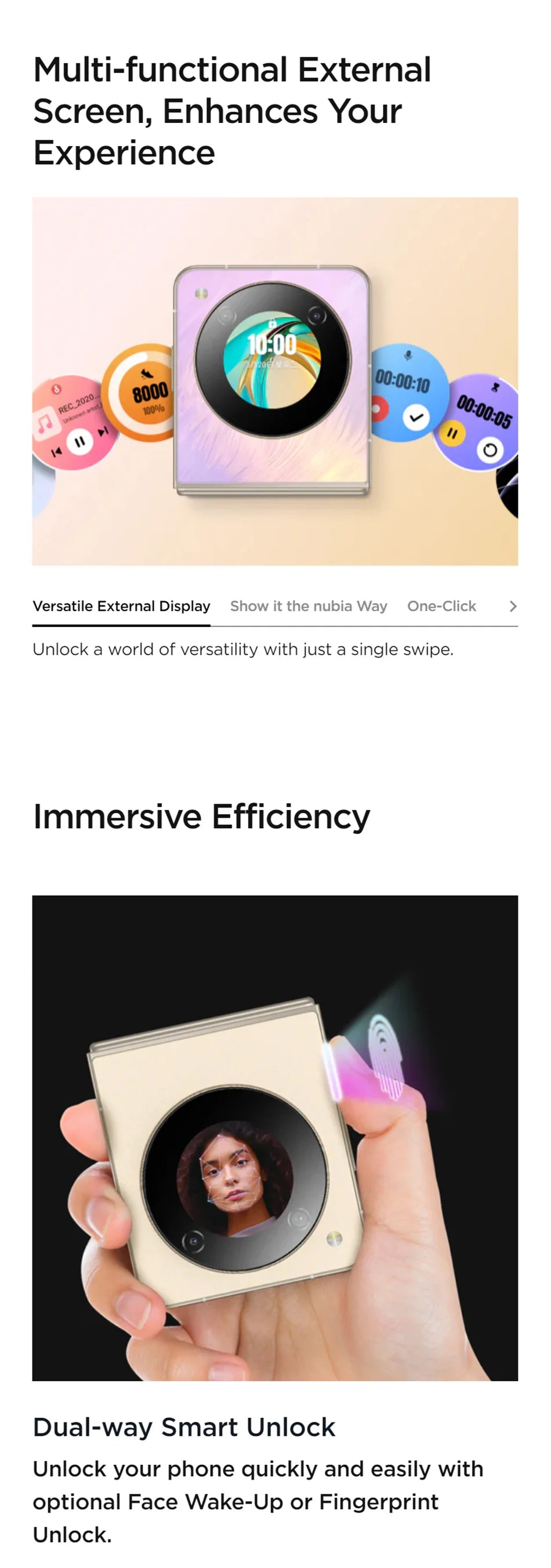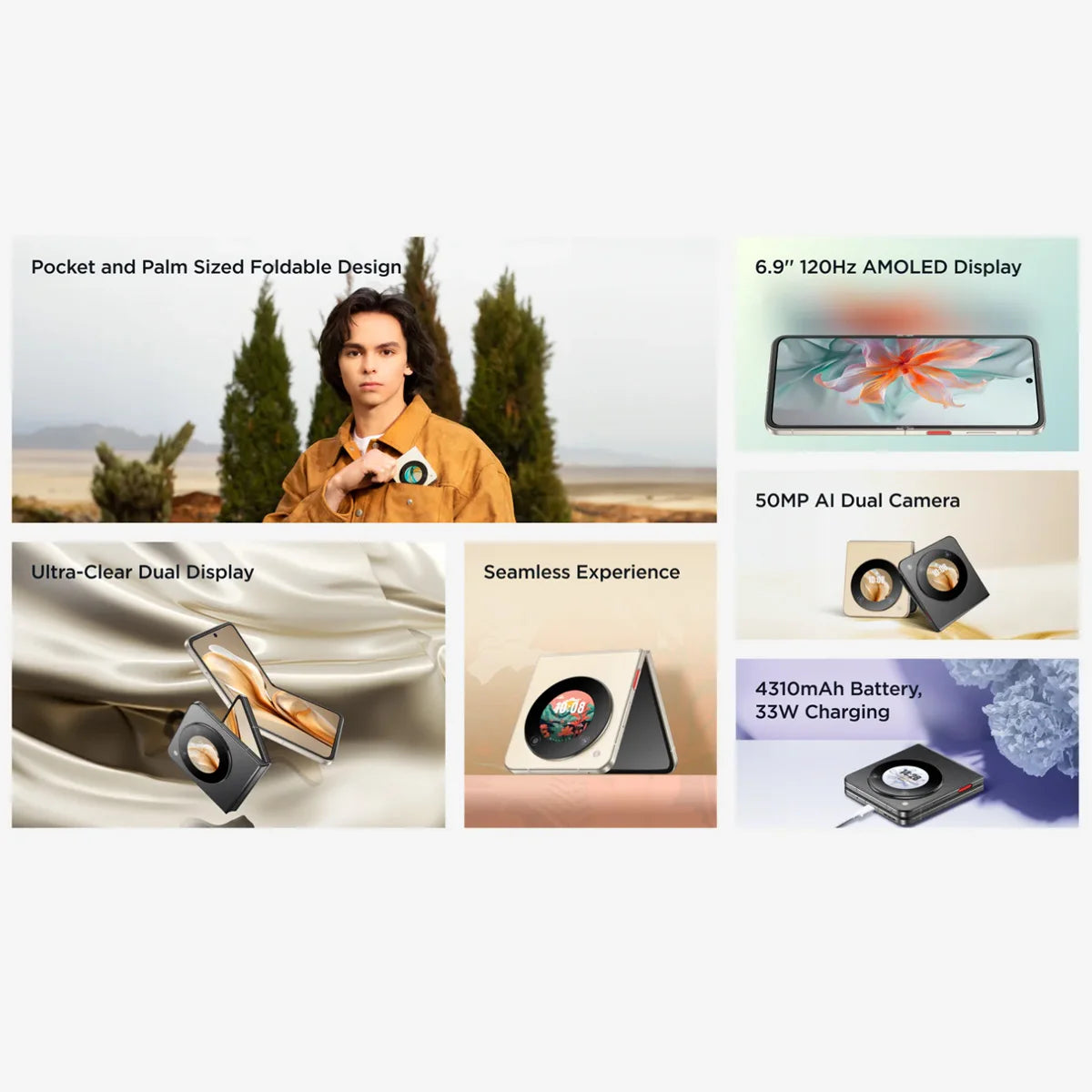 Nubia Flip 5G Global Version Foldable Design Smartphone Android 6.9" 120Hz OLED Folded Screen 50MP AI Dual Camera 33W Charging
