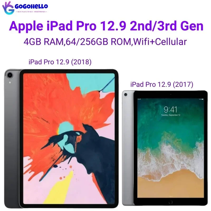 Original Apple iPad Pro 12.9'' 2017/2018 Unlocked iPad 2nd/3rd Gen Wifi+Cellular ROM 64/256GB RAM 4GB 12MP IPS LCD iOS 96% New