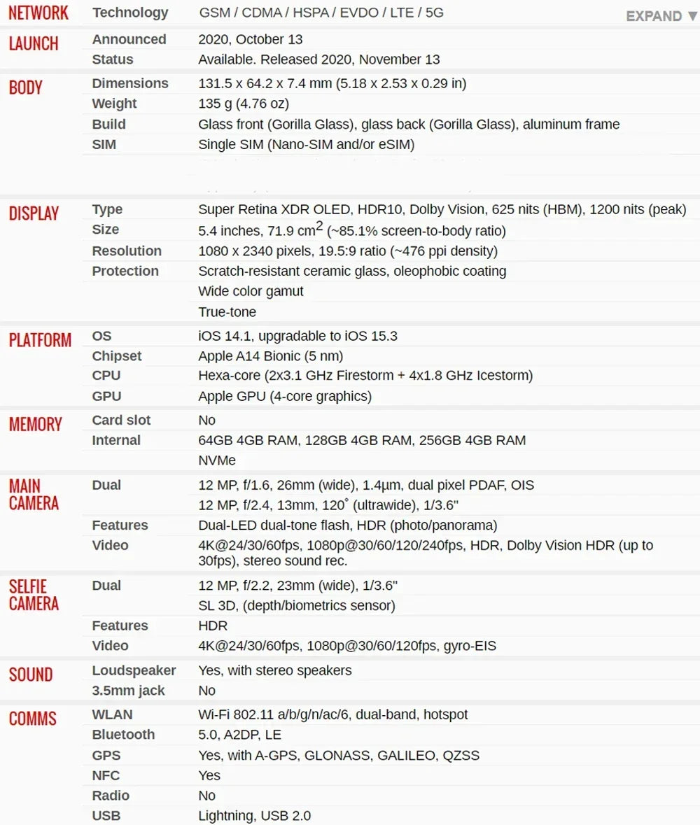 Original Apple iPhone 12 mini 5.4" 4G 5G 64GB/128GB/256GB ROM Dual 12MP A14 Chip IOS LTE Unlocked Smartphone 12MINI Mobile phone