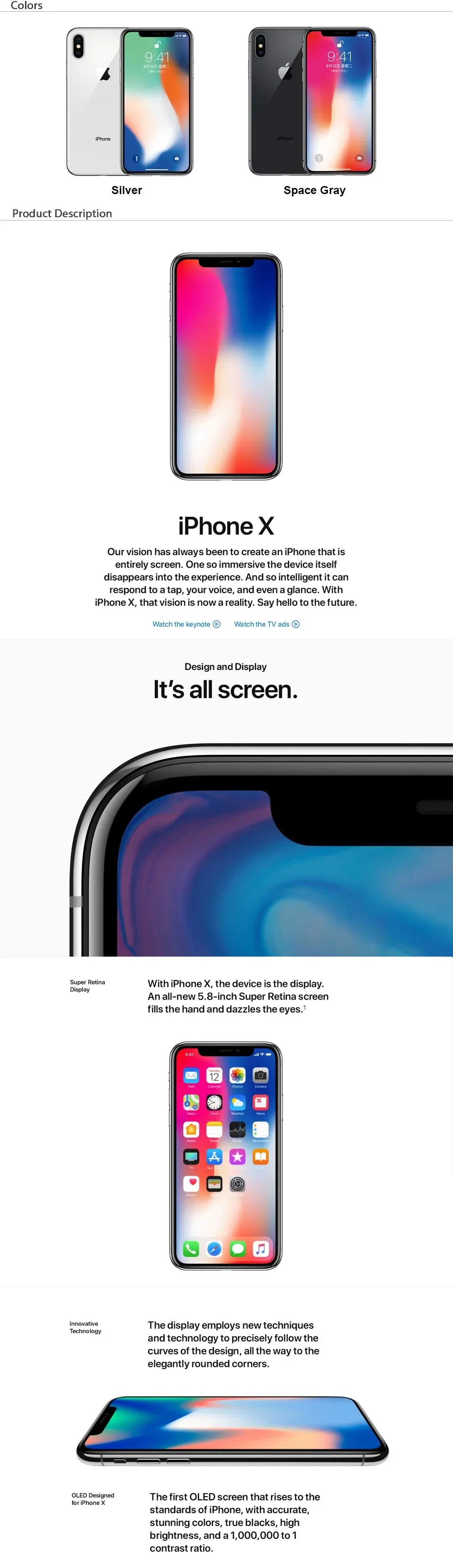 Original Apple iPhone X Face ID 64GB/256GB ROM 5.8" 3GB RAM 12MP Hexa Core iOS A11 Dual Back Camera 4G LTE Unlocked Smart Phone