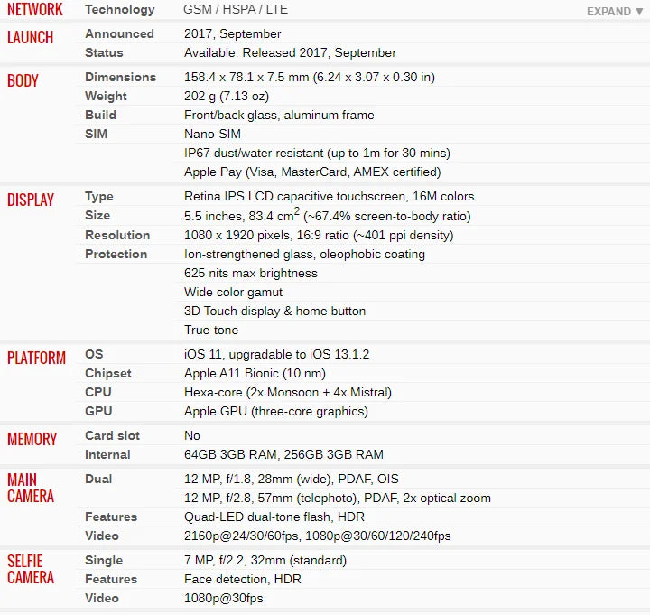Apple Model: iPhone 8 Plus,Apple A11 Bionic