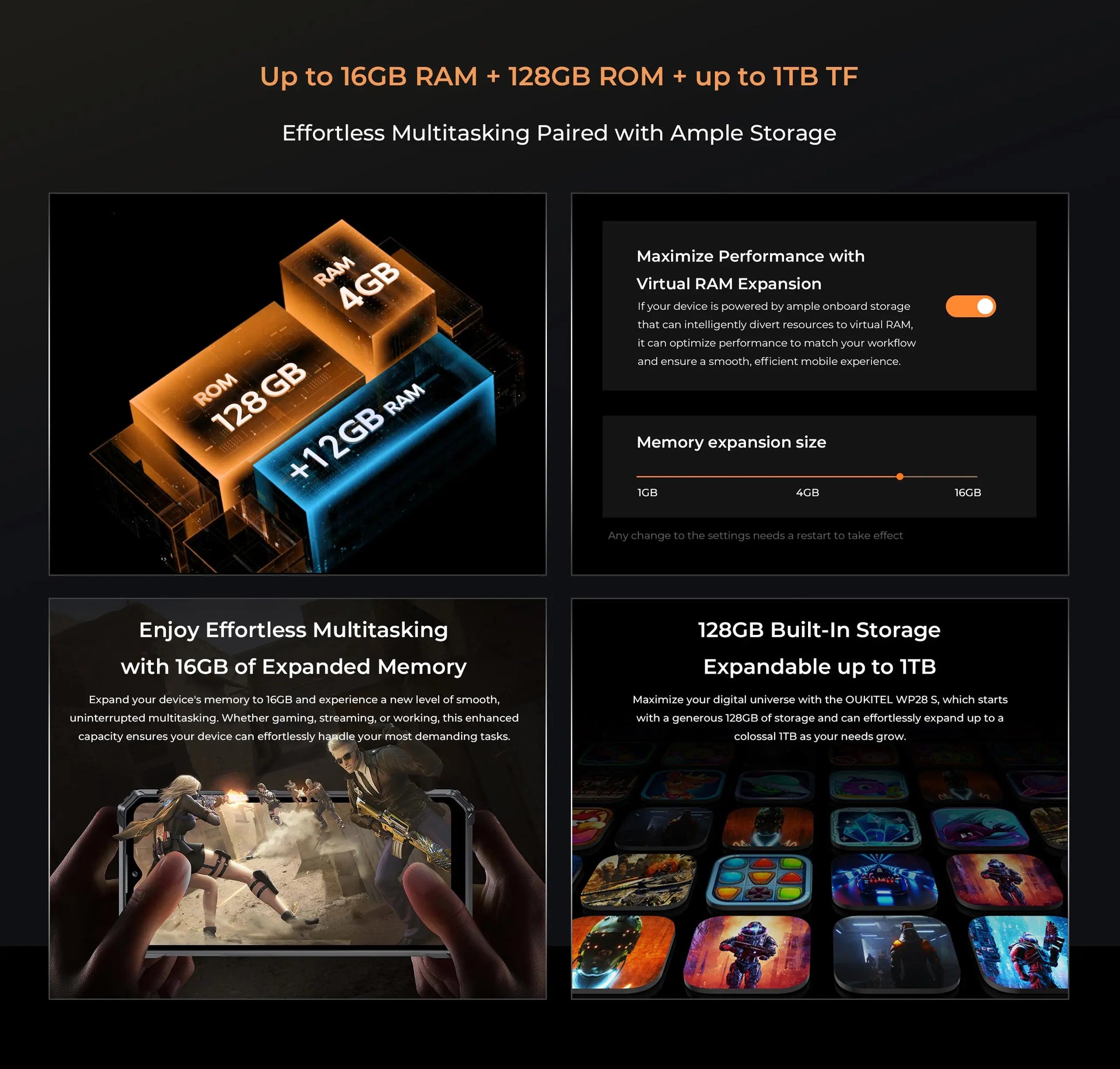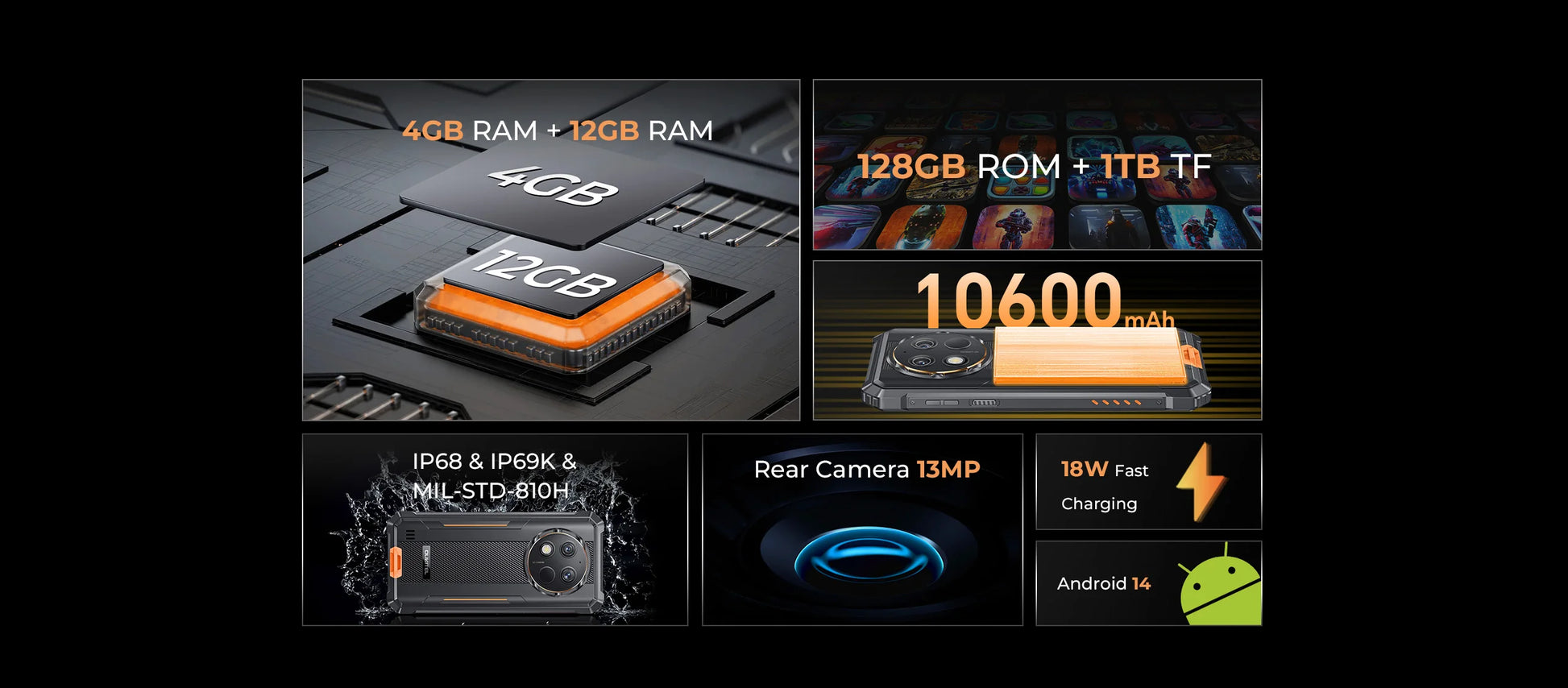 Oukitel WP28 S Rugged Smartphone 6.52‘’ HD 10600MAH 16GB (4+12)+128GB ANDROID14 13MP Camera Cellphone