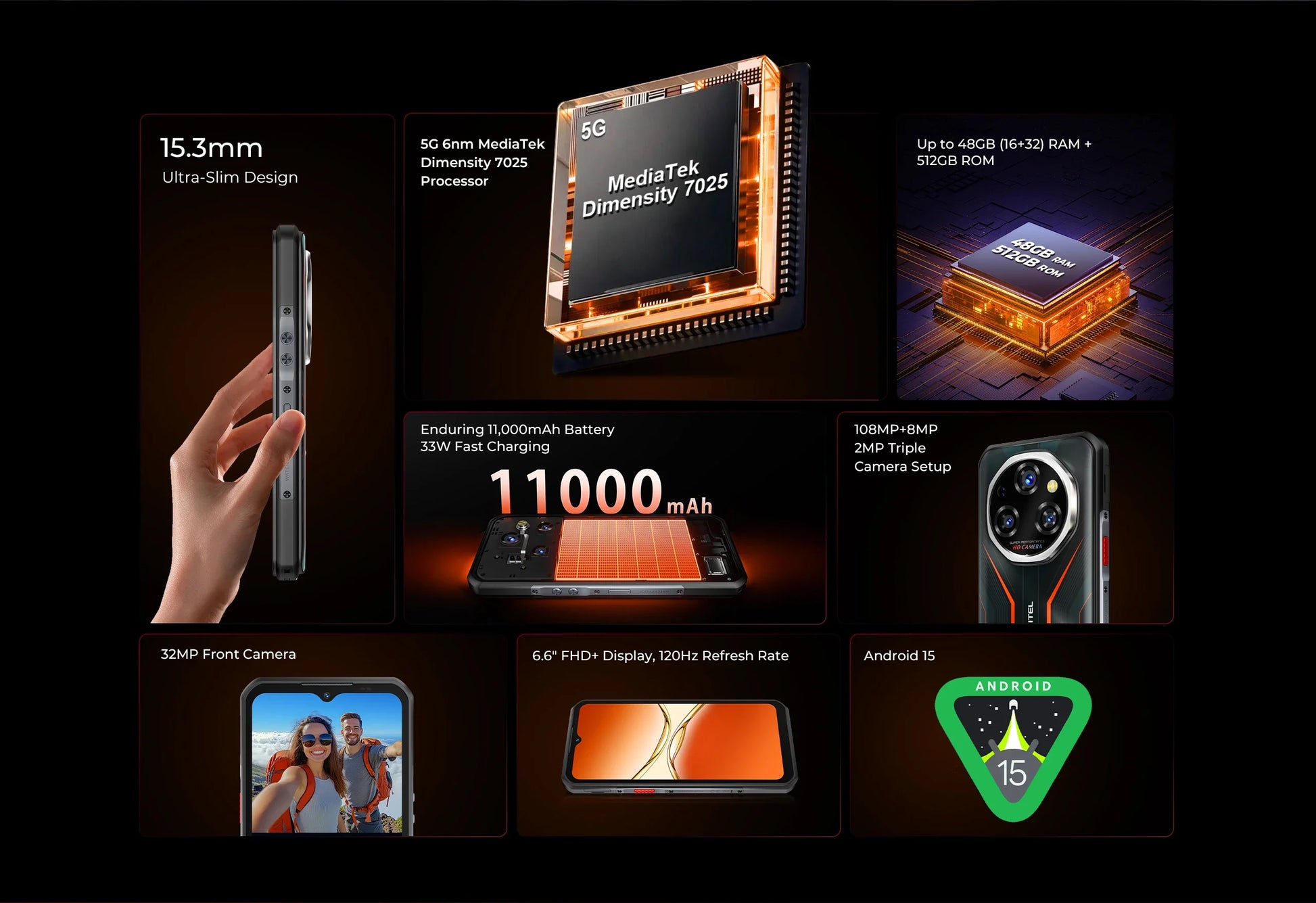 Oukitel WP55 Pro 5G Rugged Smartphone Android 15.0 New 6.6" Product Global Version 48GB(16+32) +512GB 108MP Cell Mobile Phone
