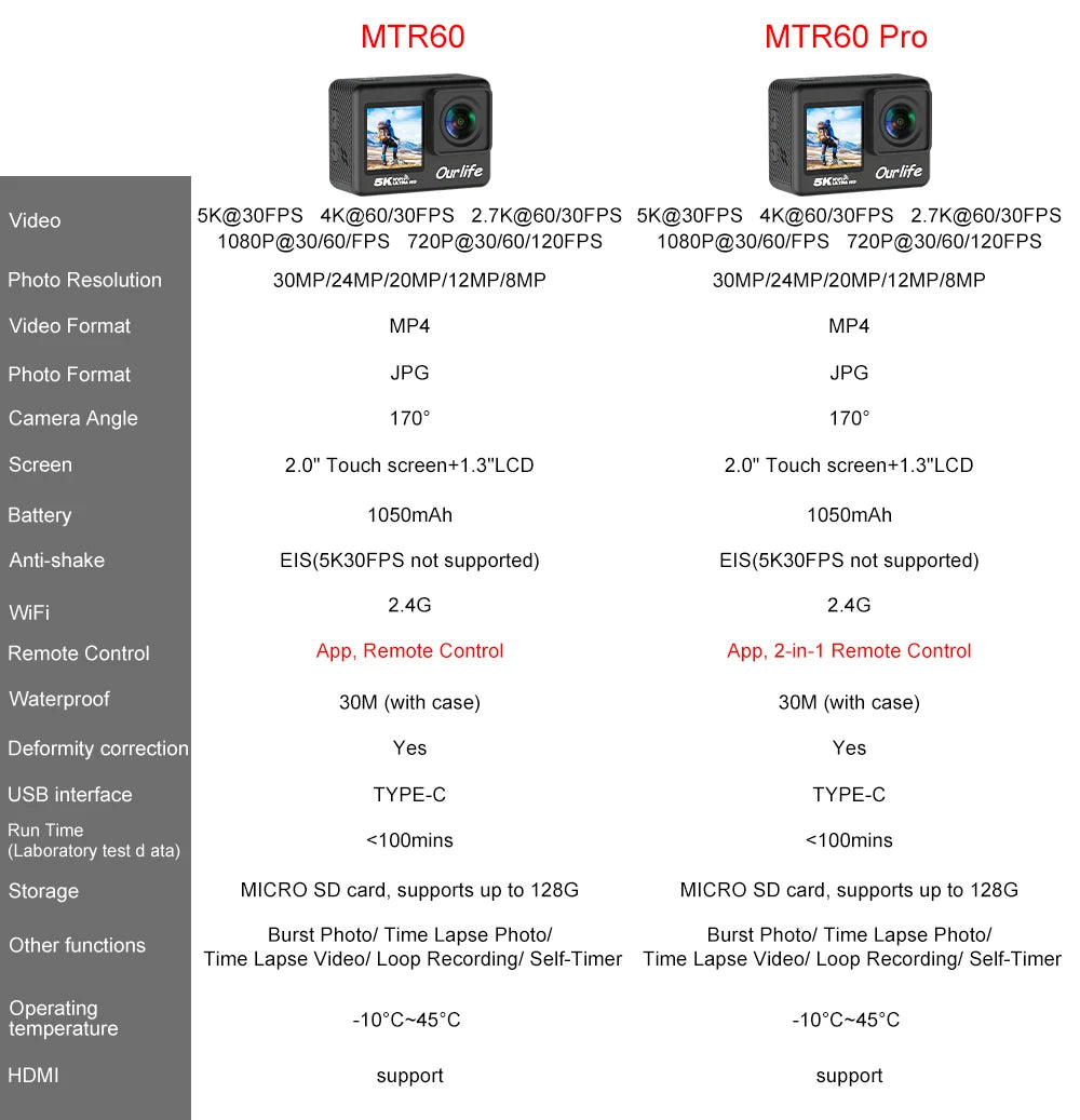 Ourlife 5K30FPS Action Camera 2.0'' Touch LCD 170° DVR 30M Waterproof Remote Control 5X Zoom Helmet WiFi 4K60FPS Sport Camera