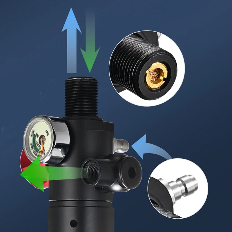 Scuba Diving Oxygen Tank 1L Cylinder Underwater Breather for with Breathing Valve A Set
