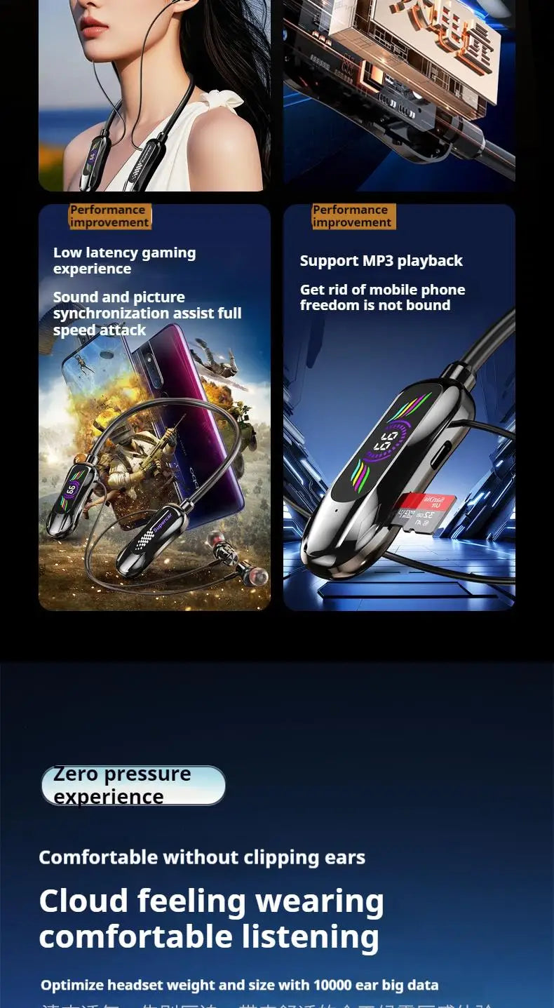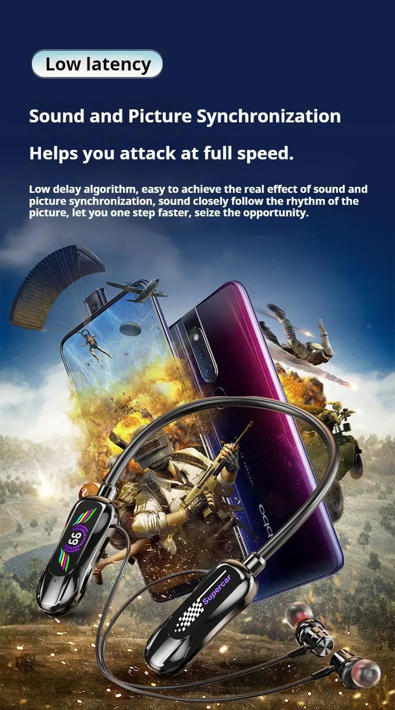 Sports Car Shape Stereo Sound Neckband LED Display Wireless Bluetooth Headphones Magnetic in-ear Headsets Sports Gamer Earphones