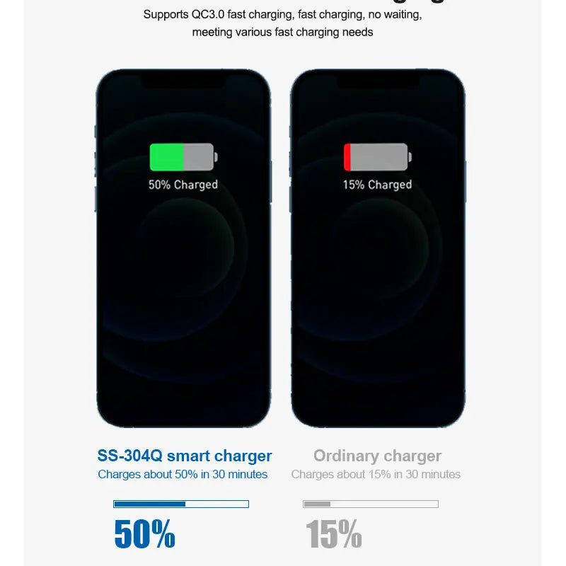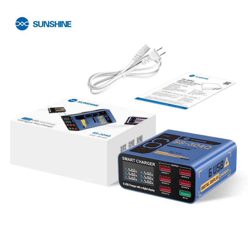 SUSNHINE SS-304Q 6-port Usb Digital Display Fast Charge QC3.0 Smart Fast Charge for Phone Tablet Watch Charging