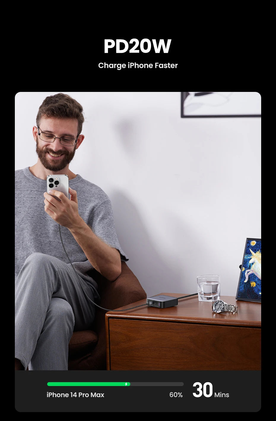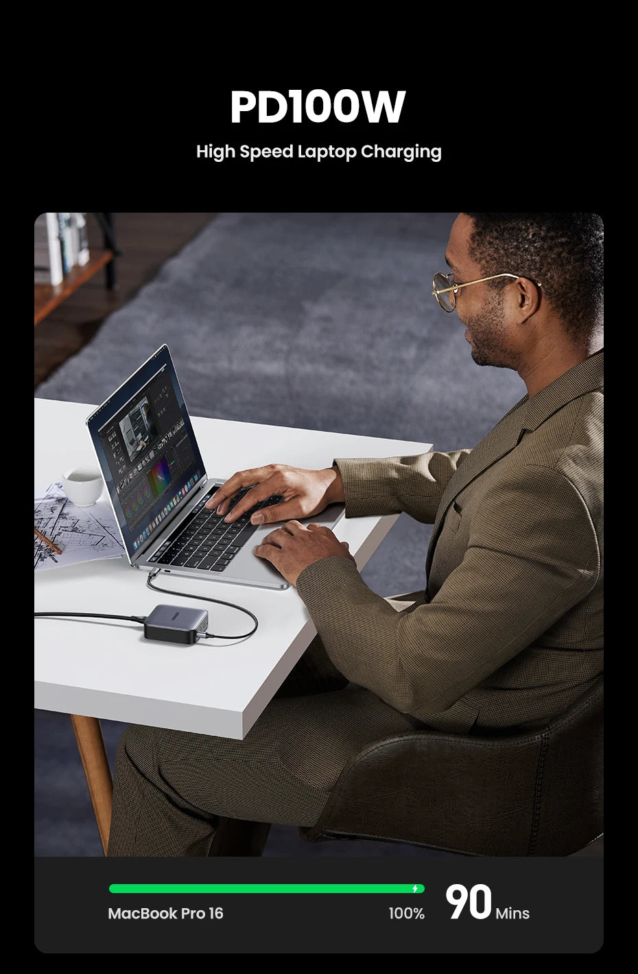 UGREEN 100W GaN Charger Desktop Laptop Fast Charger 4 in 1 Adapter For iPhone 17 16 15 14 Pro Max Phone Charger Xiaomi Samsung