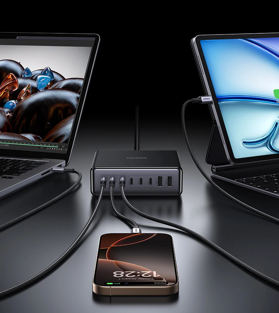 UGREEN 200W GaN Charger 8 in 1 Desktop Laptop Fast Charging Stand For iPhone 17 16 15 Pro Max Macbook Air Xiaomi Samsung Tablets