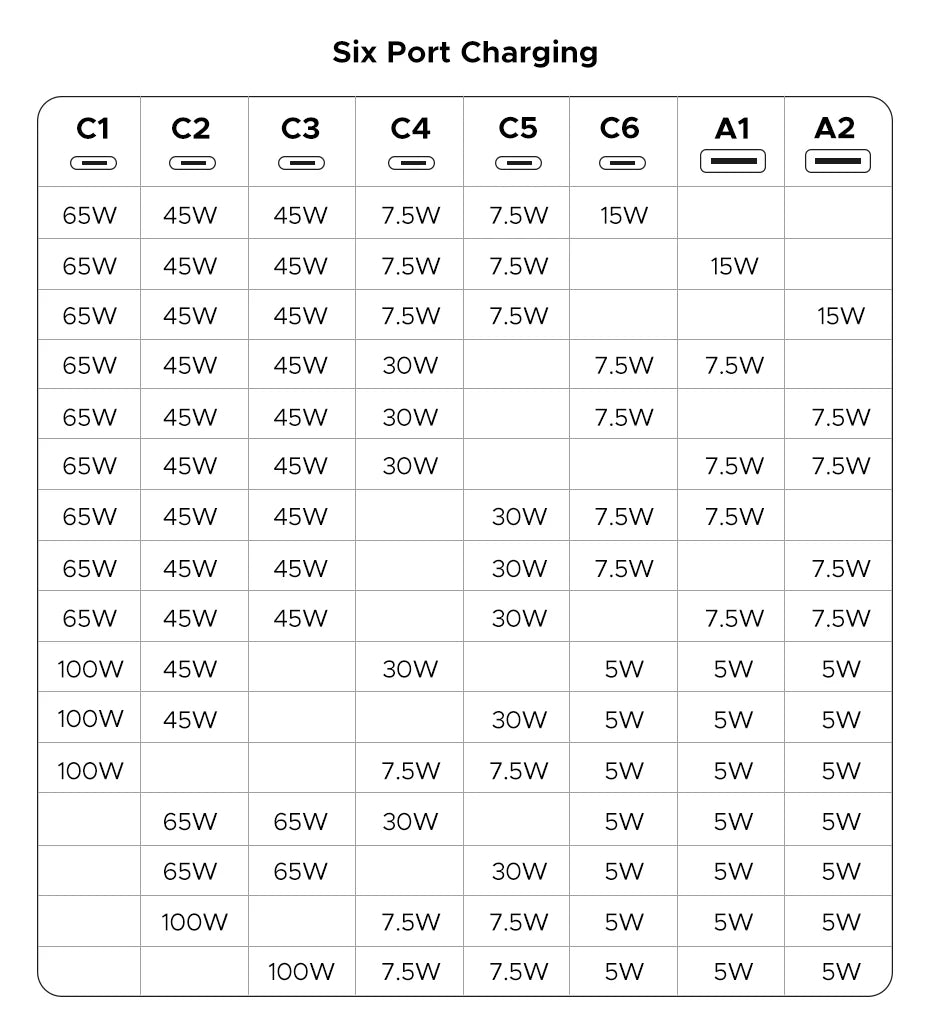 Output Interface: USB,Type C,2 A Ports,3 C Ports+