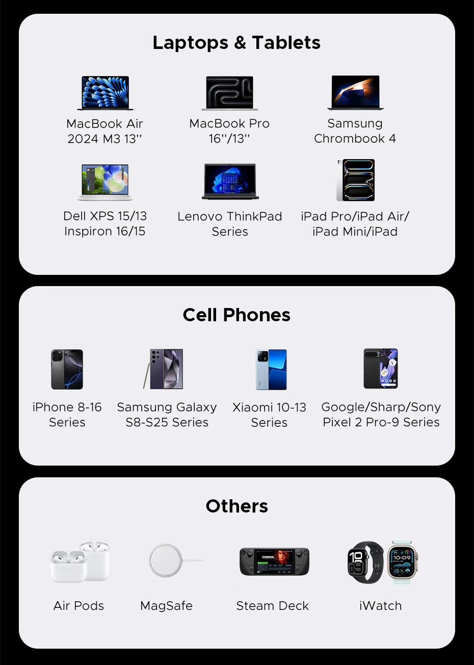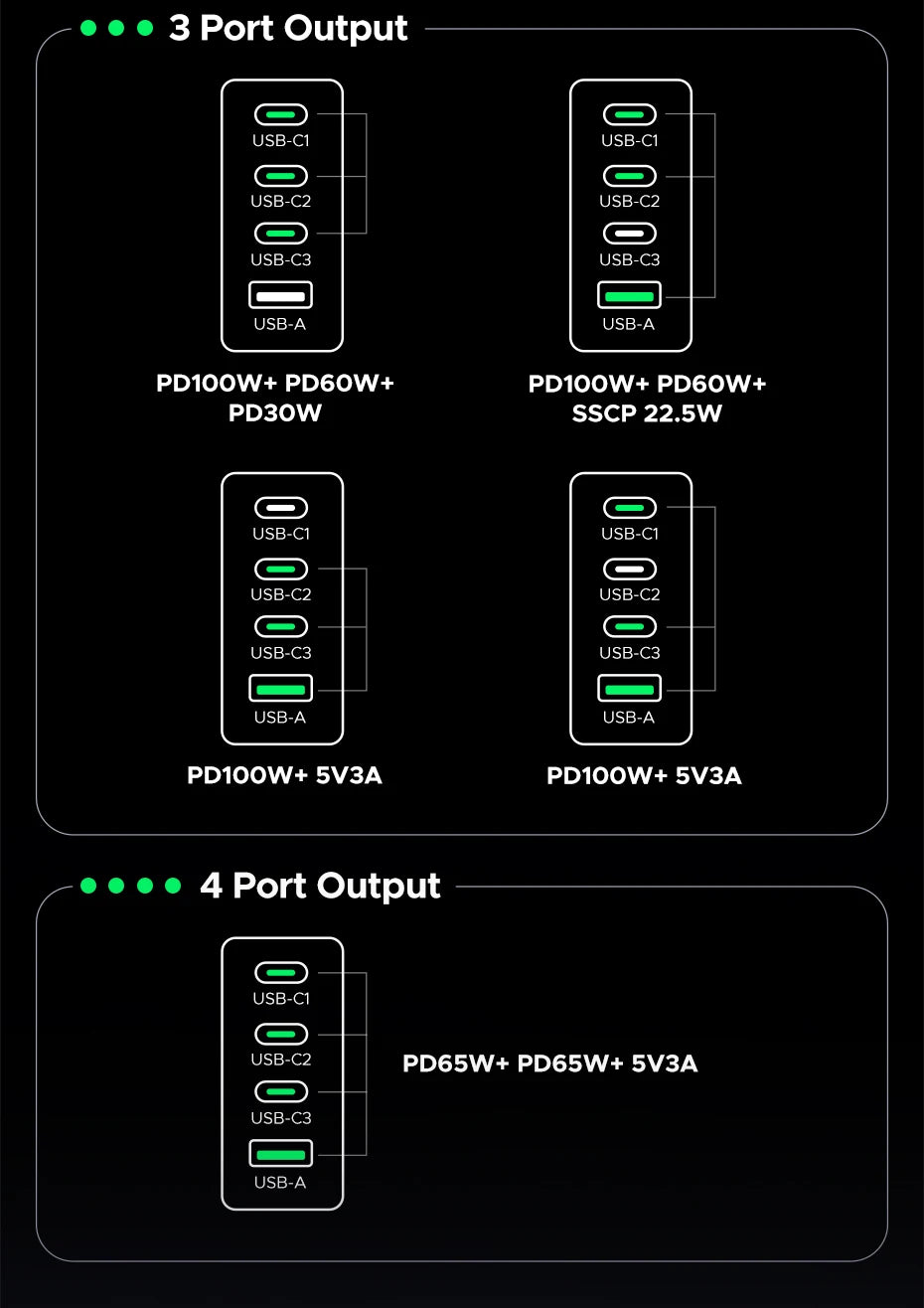 Output Interface: USB,Type C,USB-A,3 C Ports
