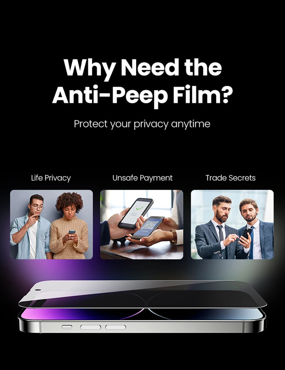 UGREEN 2PCS Privacy Screen Protector For iPhone 15 14 13 Pro Max Anti-Spy Tempered Glass For iPhone 14 Plus Screen Protectors