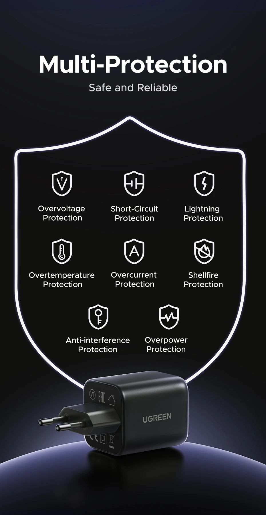 UGREEN 45W GaN Charger PD3.0 Fast Charger PPS QC3.0 Quick Charge For Samsung S25 S24 Ultra iPhone 17 16 15 Pro Max iPad Tablet